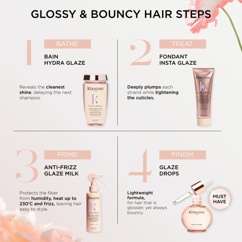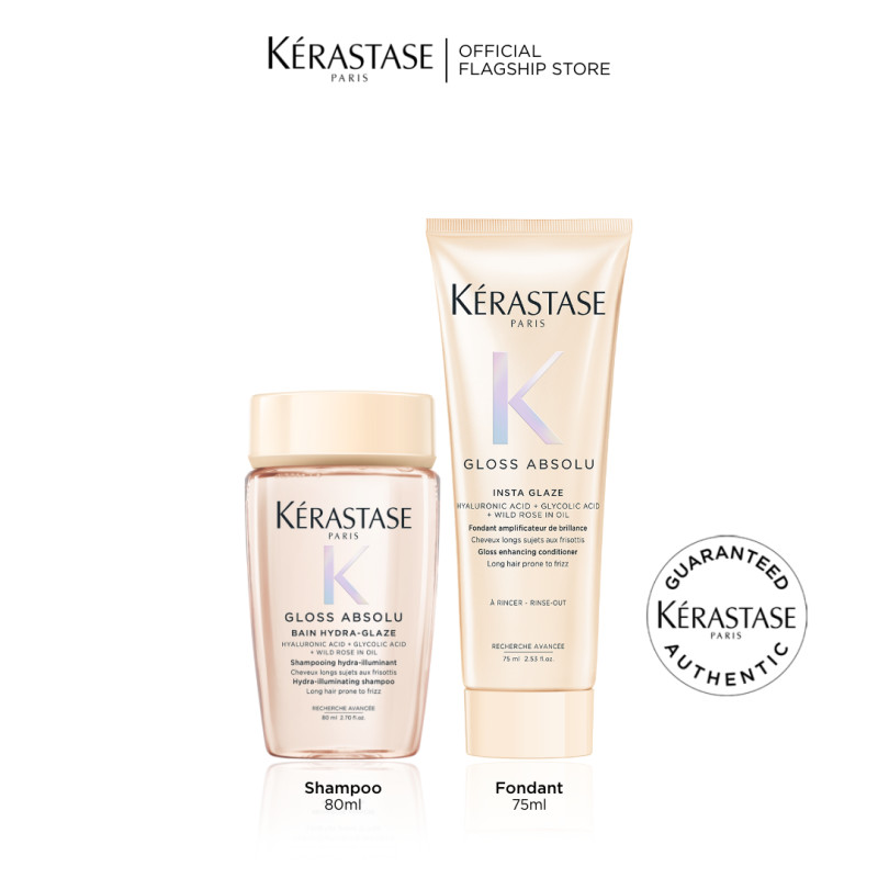 [New Launch] Kerastase Gloss Absolu Glossy Hair Trial Set Duo - Bain Hydra Glaze 80ml & Fondant Insta Glaze 75ml - Shampoo & Conditioner for Anti Frizz, Glossy, Bouncy Hair