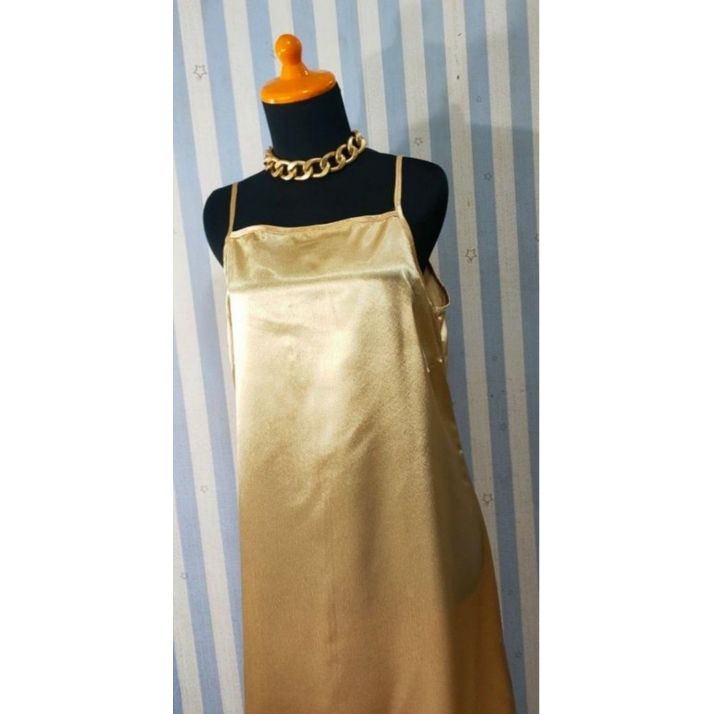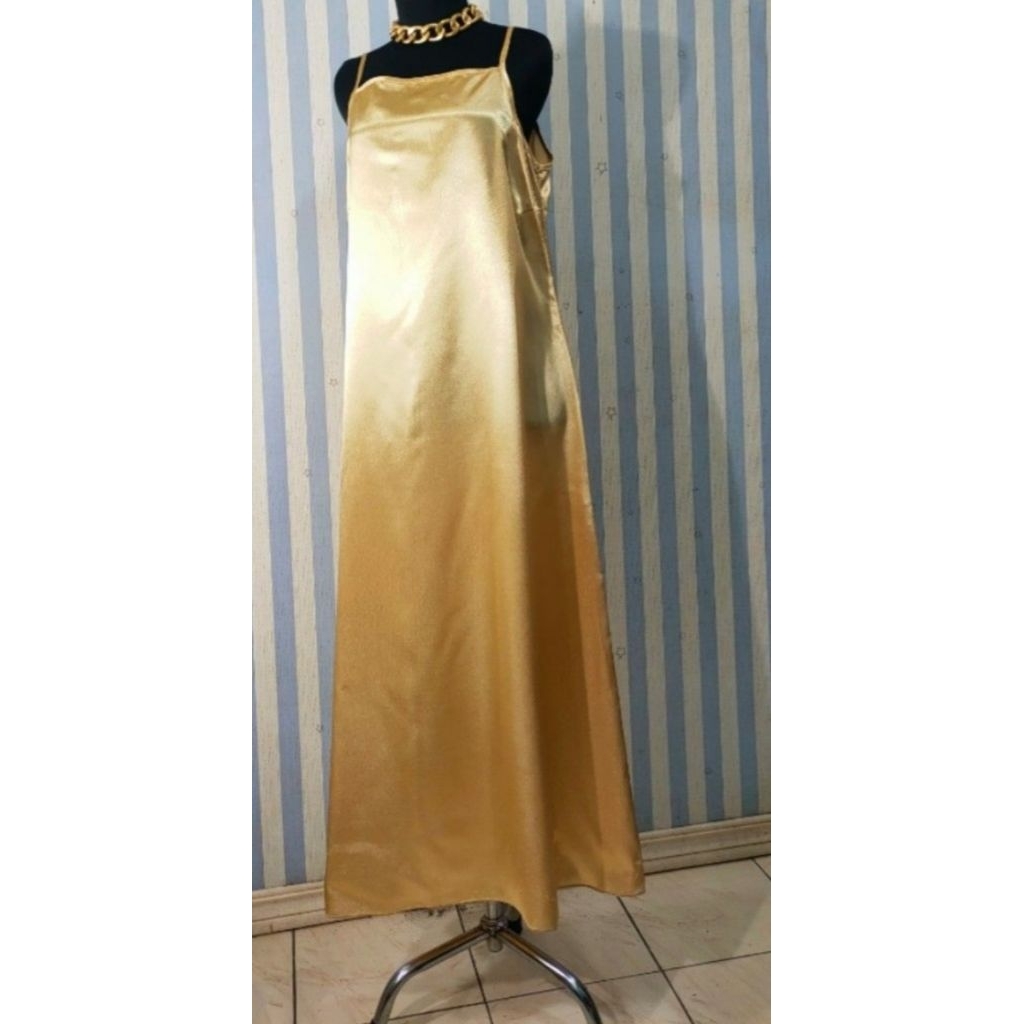 Dress Satin Gold Panjang