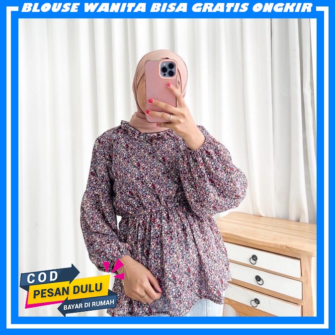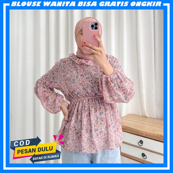 2023 Bloes Kerja Cewek Korean Bluz Blus Bluse Blusee Blouse Blose Blosee Murah Import Korea Kemeja Blouse Bloz Bluse Ibuibu Jumbo Blus Terbaru Bolouse Style Baju Casual Remaja Cewk Blus Flower Blouse Korean Style / Floral Blouse Motif Bunga / Olla Blouse