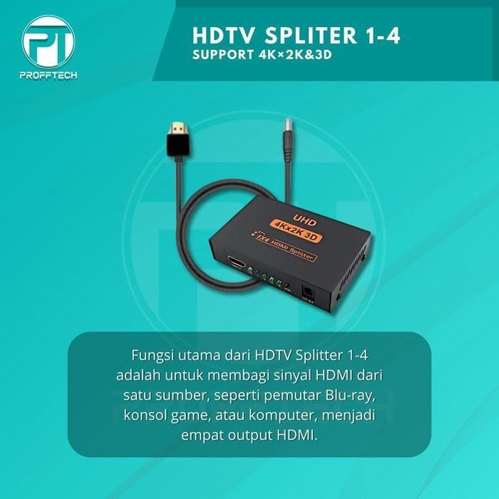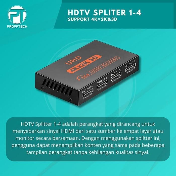 Profftech HDTV Splitter 4 Port 1 In 4 Out 1-4 1 to 4 HDMI 4K