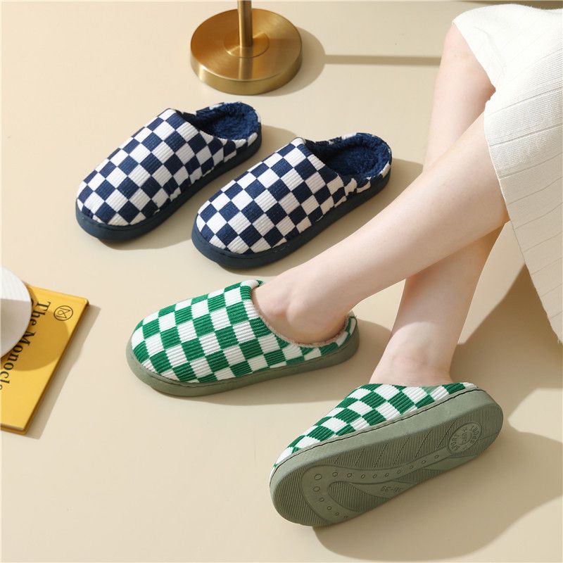 SANDAL RUMAH KOREA BULU SLIP ON CHECKERED BOARD