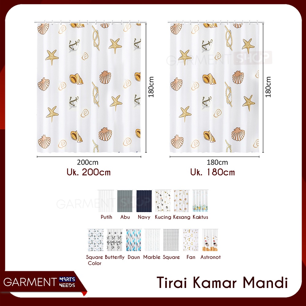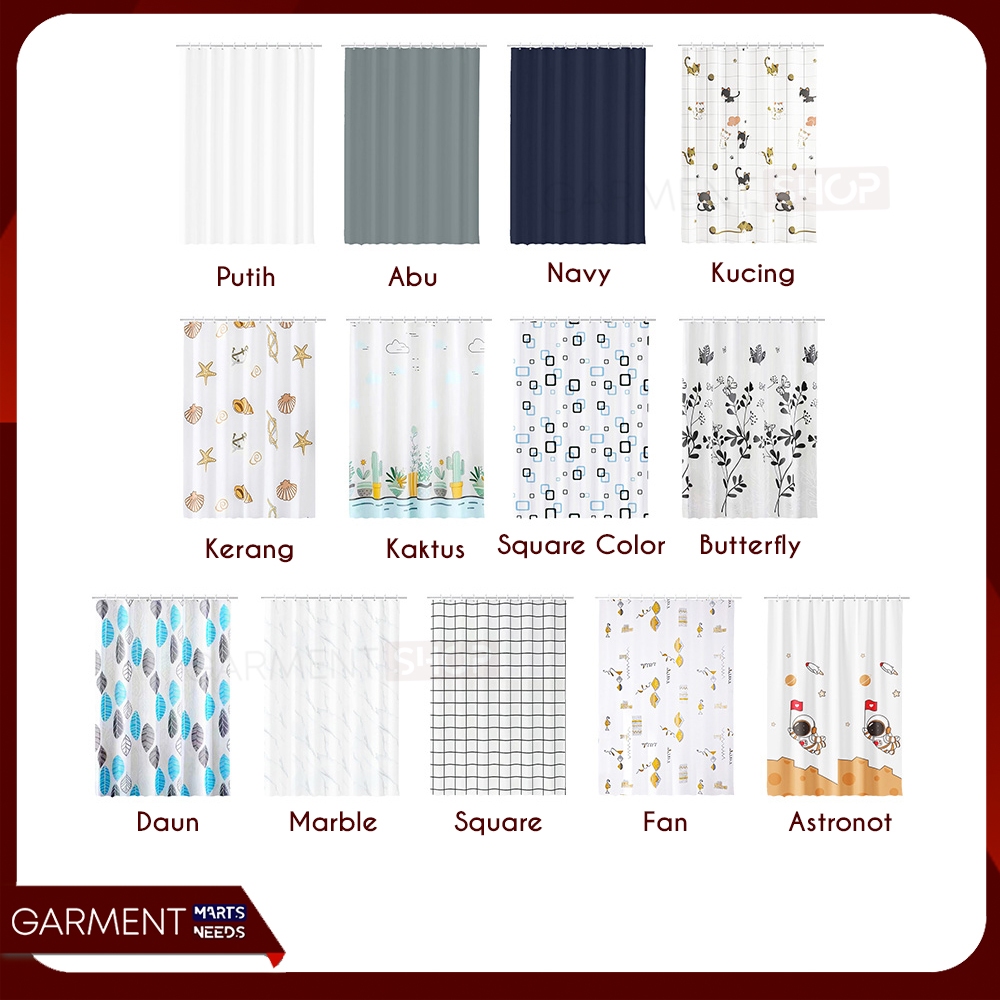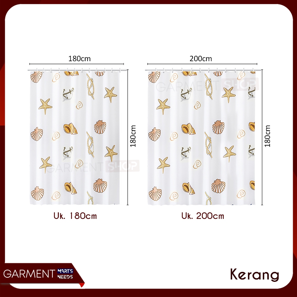 SCURT - Tirai Kamar Mandi Gorden Anti Jamur Waterproof Motif Cantik Shower Curtain Bahan Peva Tebal Free Ring Pengait