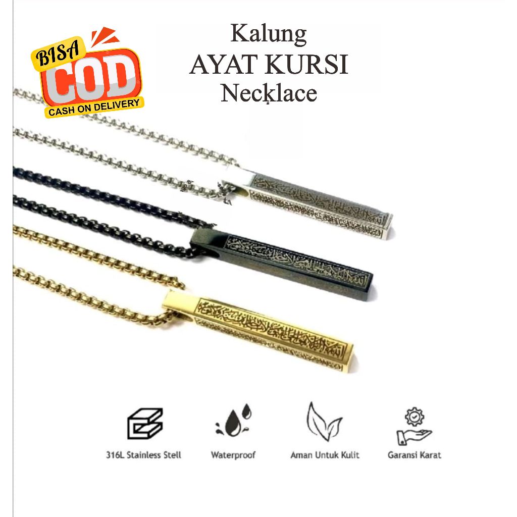 Kalung Ayat Kursi Anti Karat Model Rantai Rolo Italy Liontin Balok Wanita