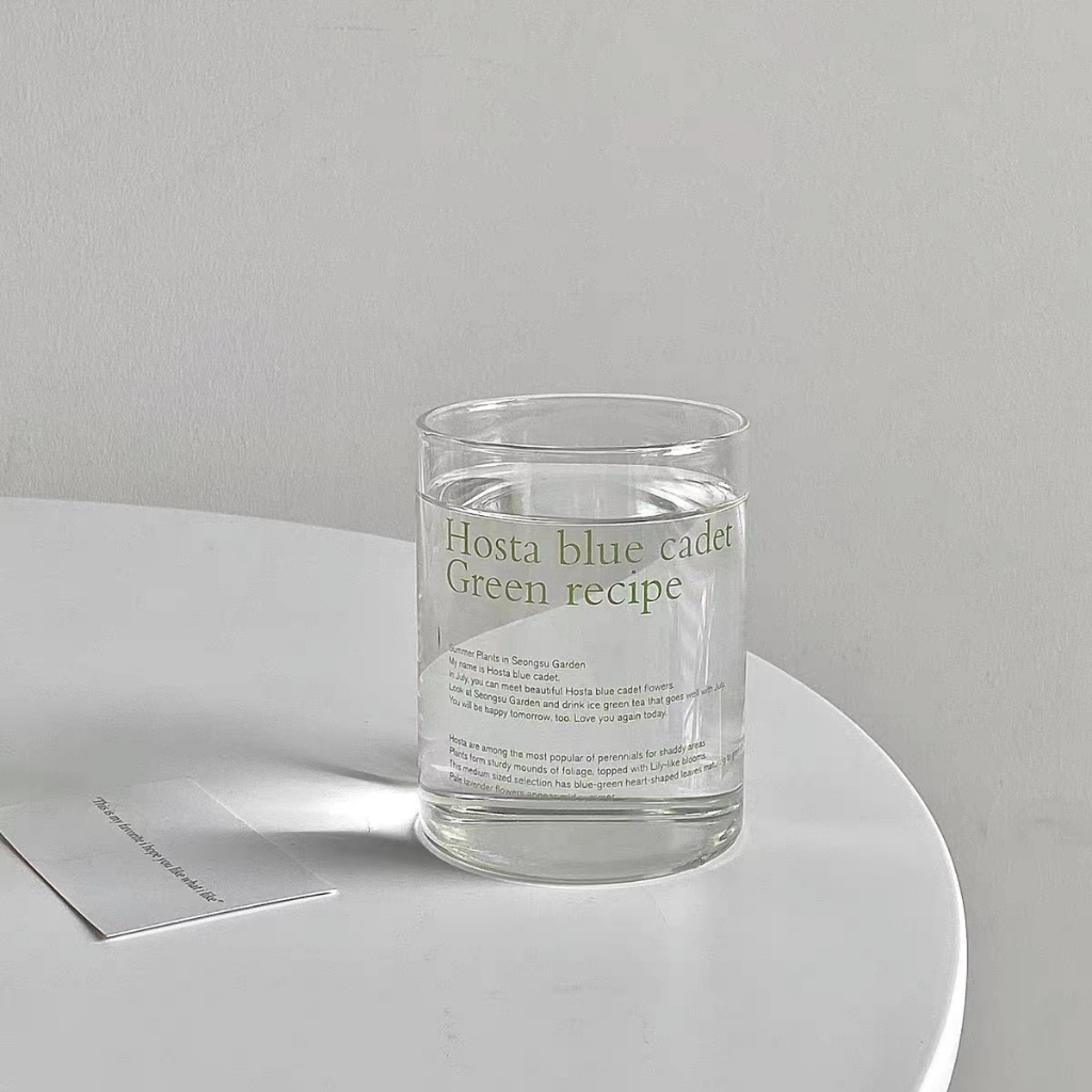 HOSTA GREEN Gelas Kaca Aesthetic | Gelas Homecafe Typography Letter Borosilicate Glass