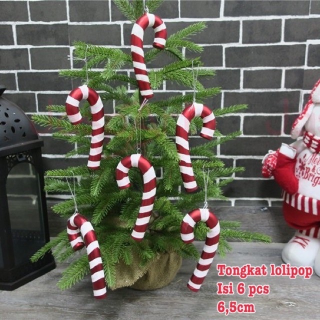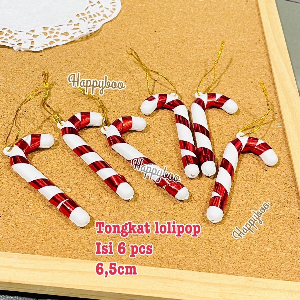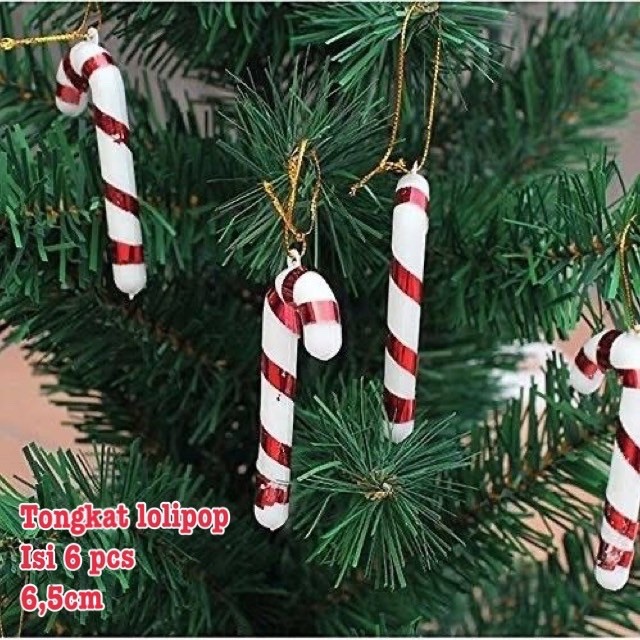 hiasan natal tongkat lolipop dekorasi christmas isi 6 set ornament stick permen natal xmas