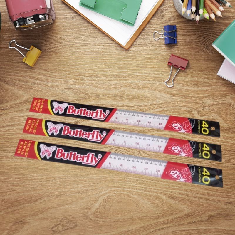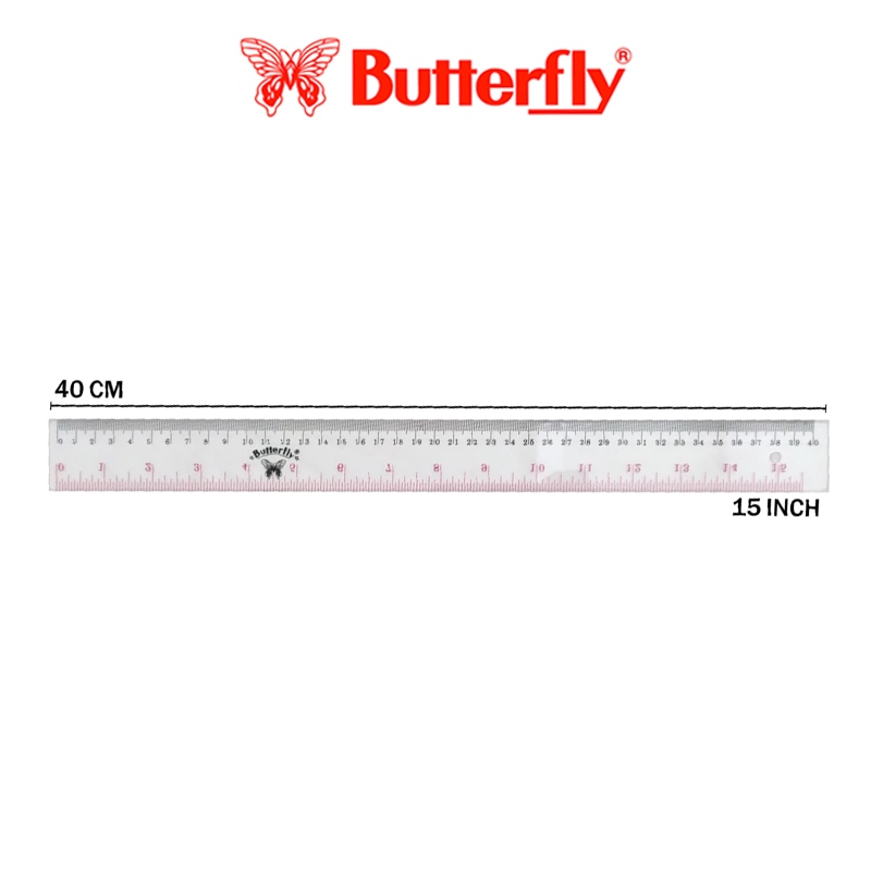 Penggaris Butterfly 40cm Garisan Clear Transparent Plastic Ruler