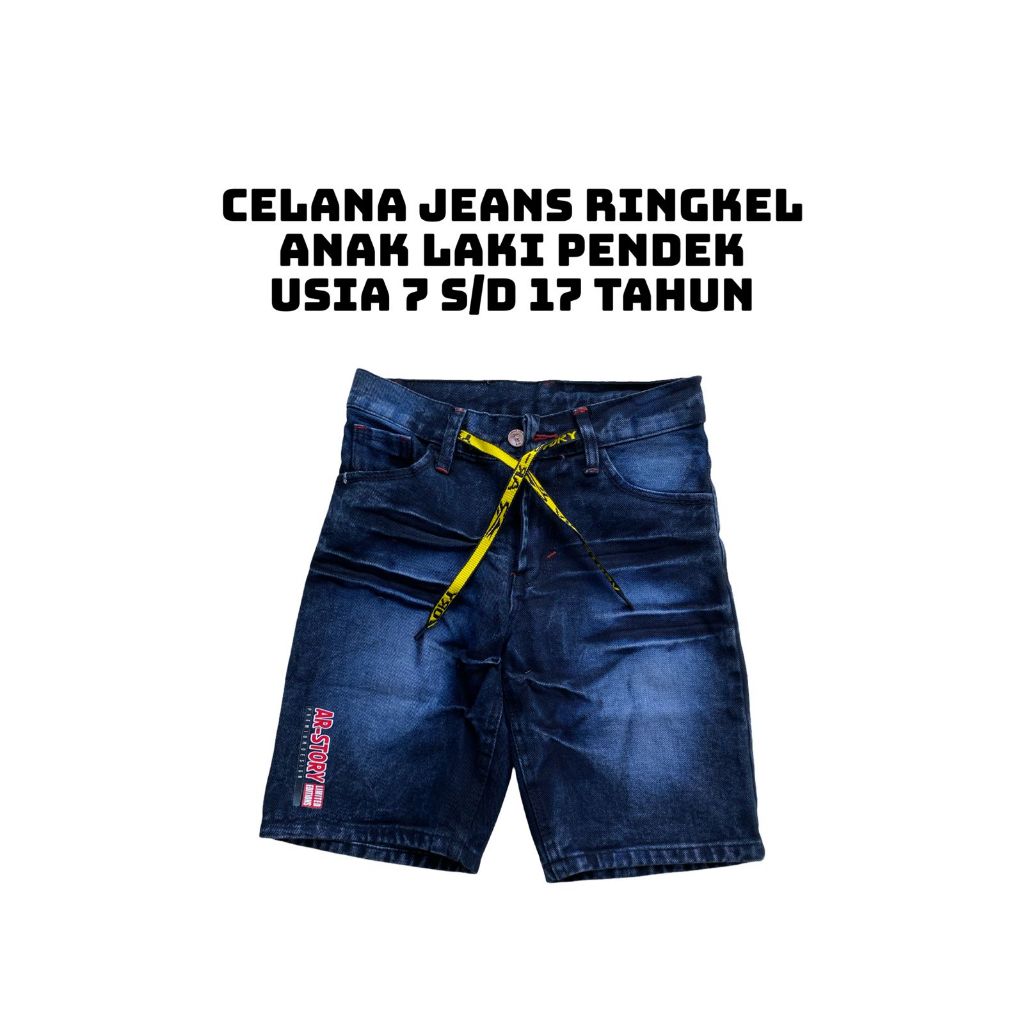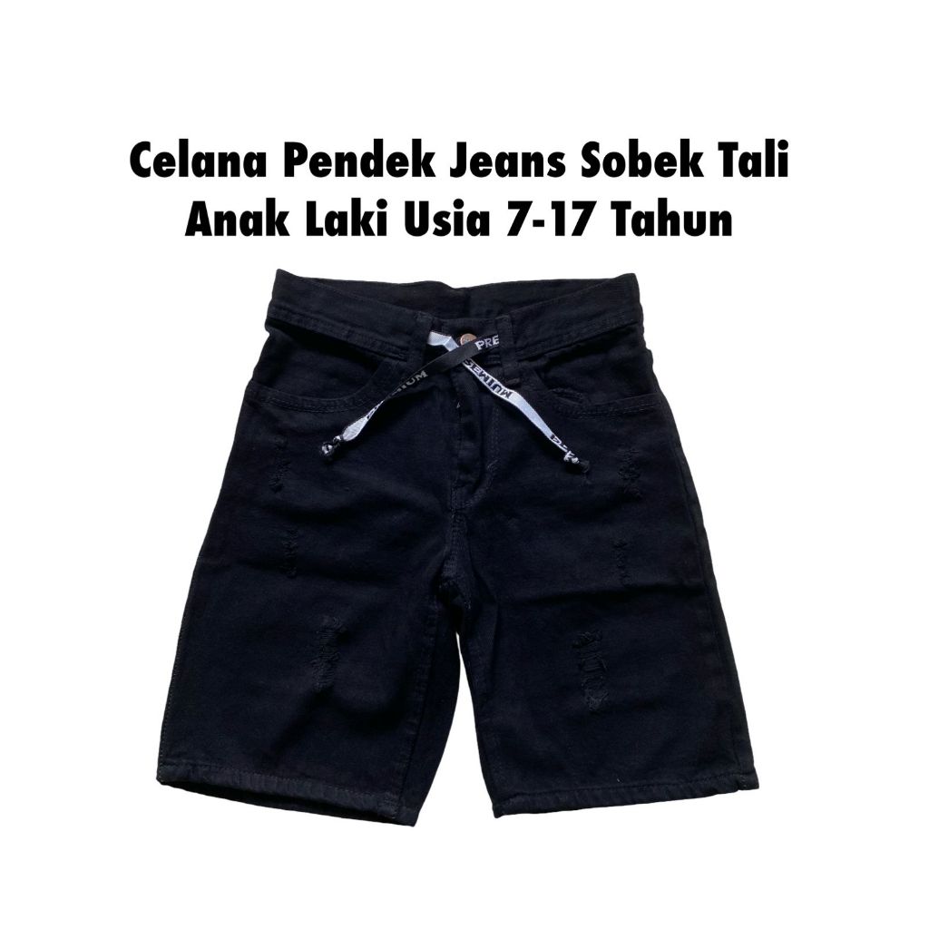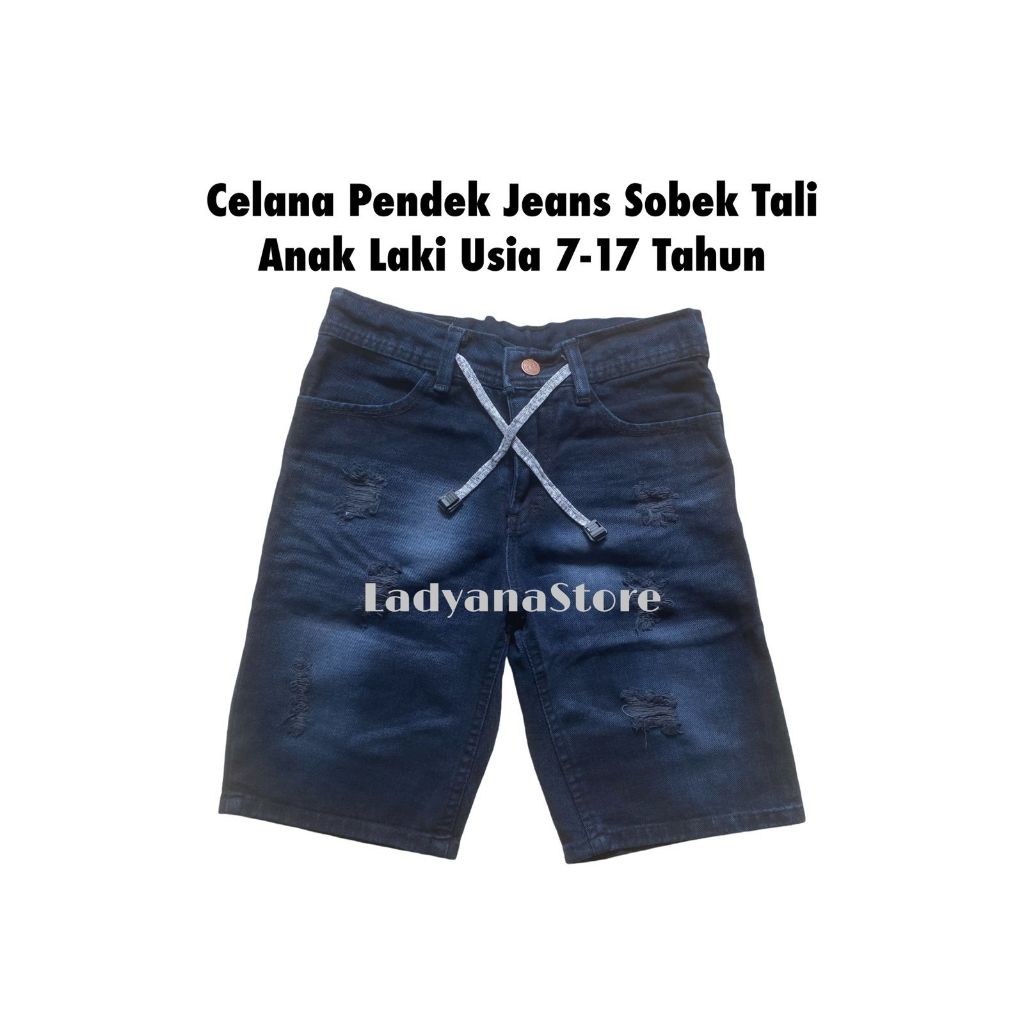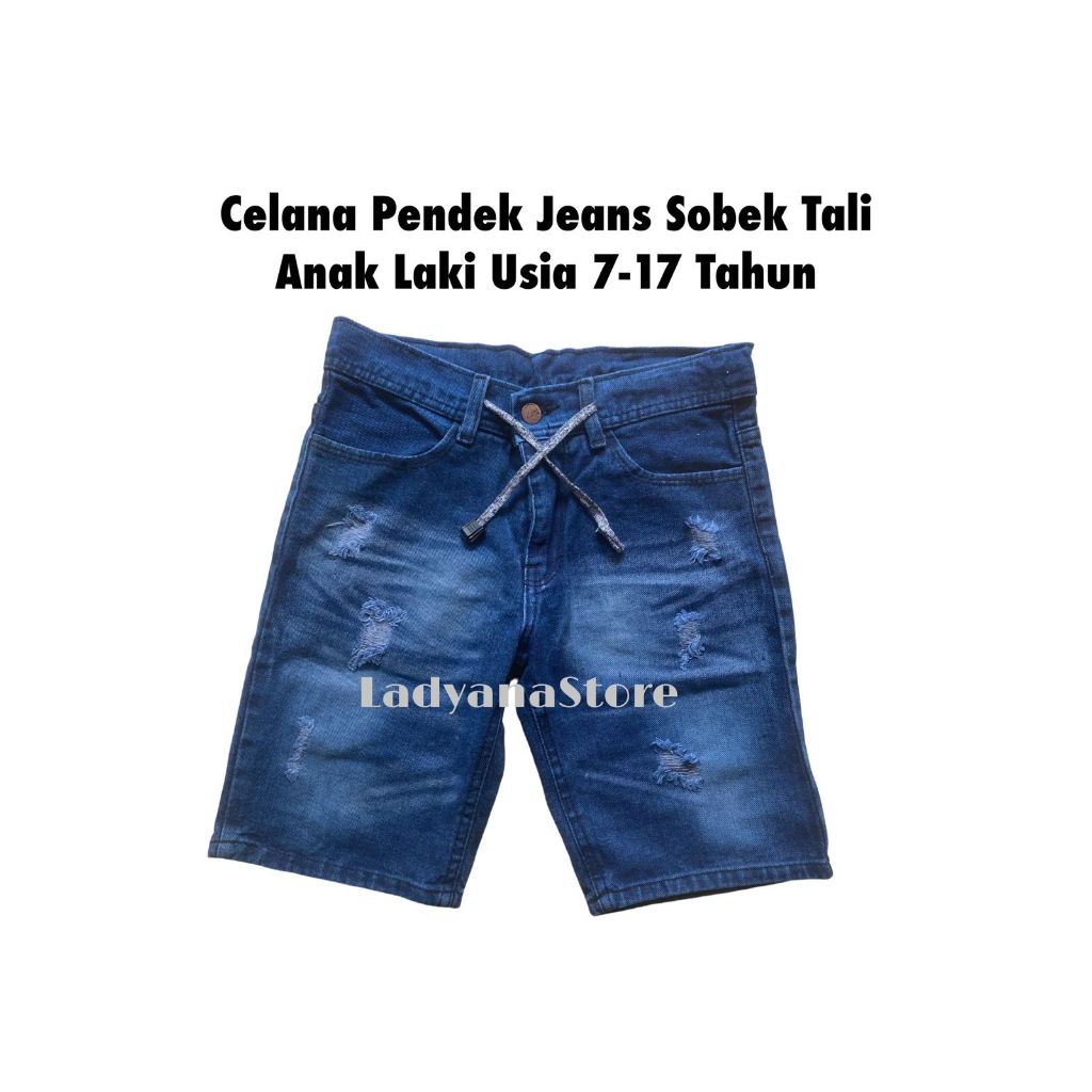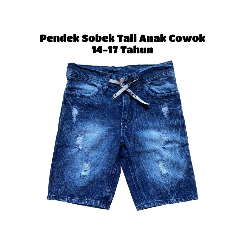 Celana Pendek Jeans Sobek Robek Anak SD SMP Cowo Cowok Laki Remaja Tanggung Umur 7 8 9 10 12 Usia 14 15 16 17 Tahun Thn Jins Pinggang Tali Warna Biru Navy Blit Muda
