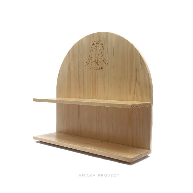AMAKA - Rak display kayu - Rak kayu multifungsi - model bagian atas setengah lingkaran (2susun)