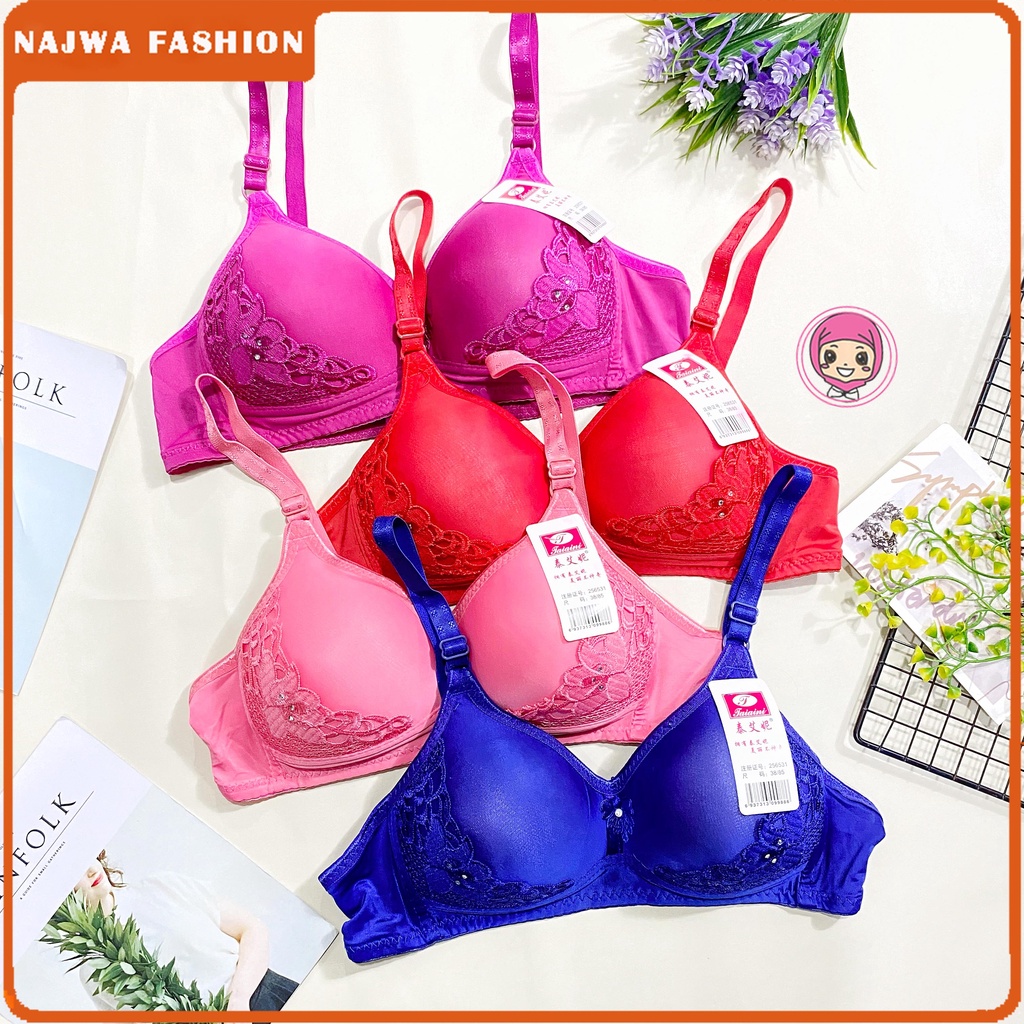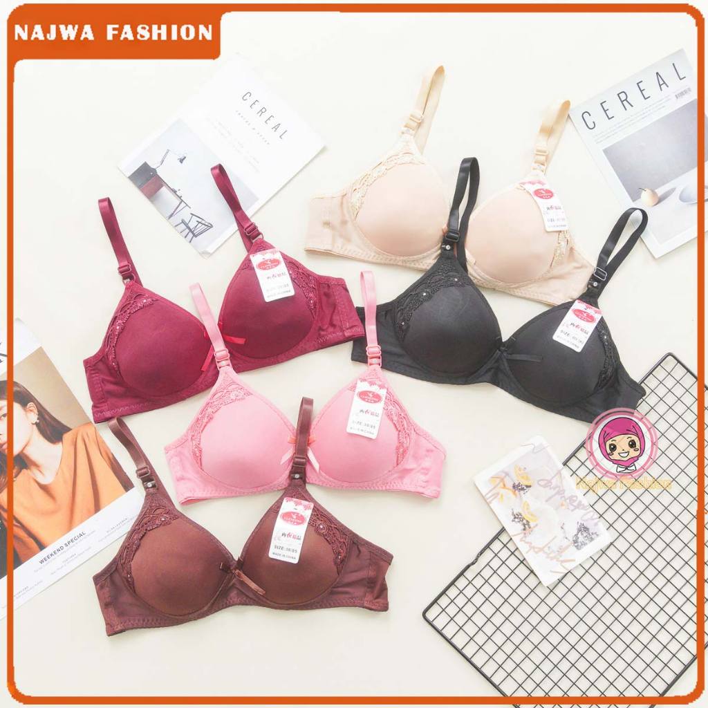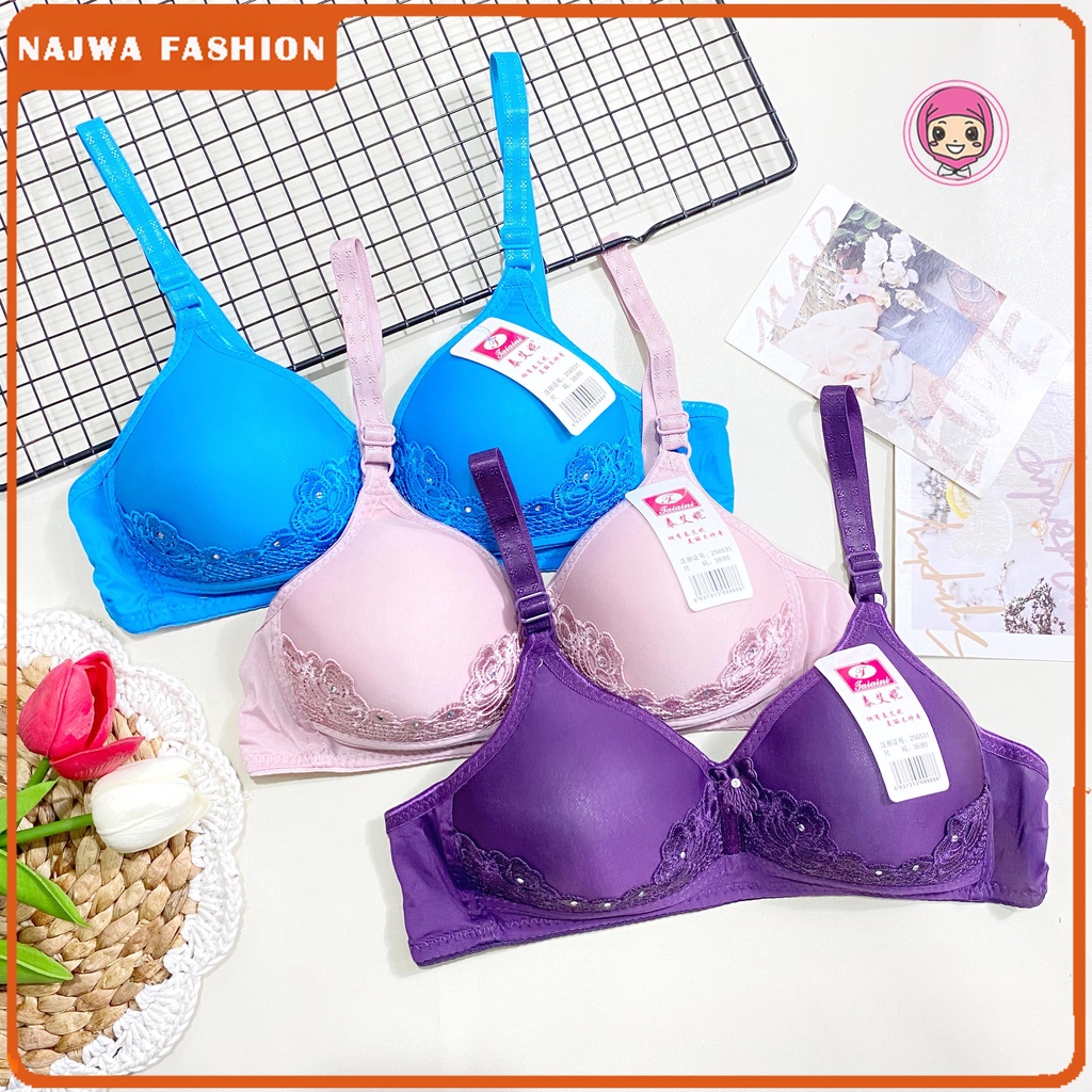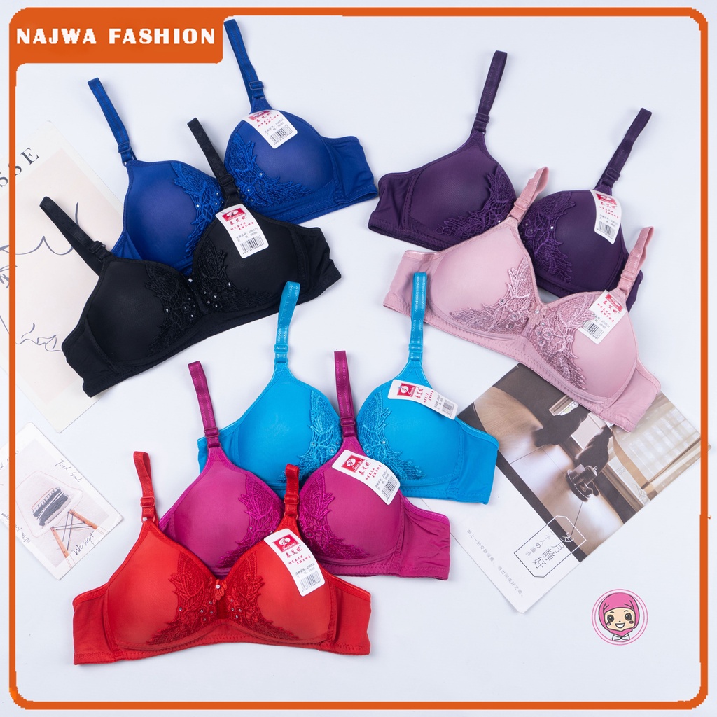 NAJWA - Bra Bh Busa Tanpa Kawat Kancing Bra Wanita Bordir Kualitas Premium Real Pic TAIAINI