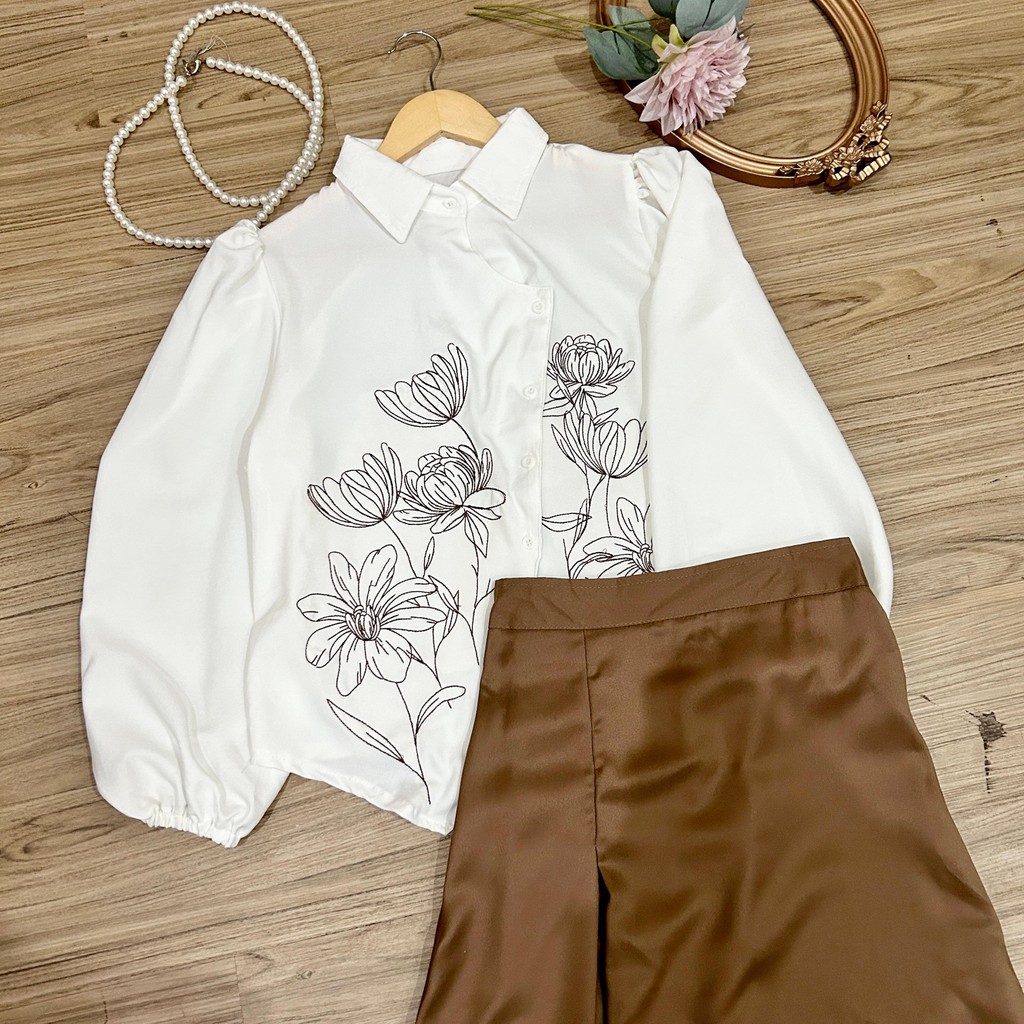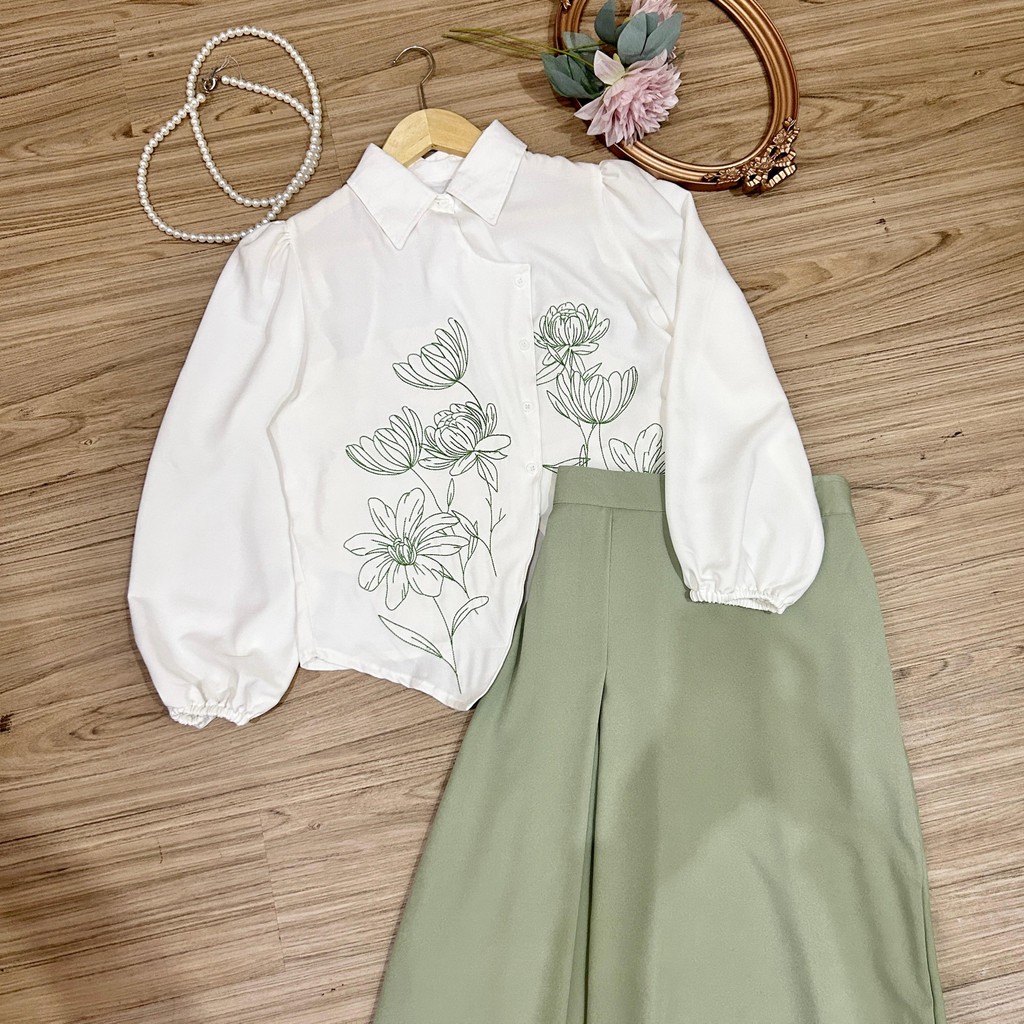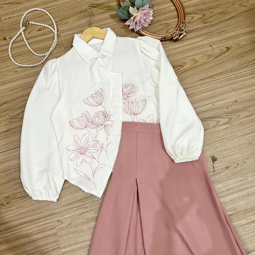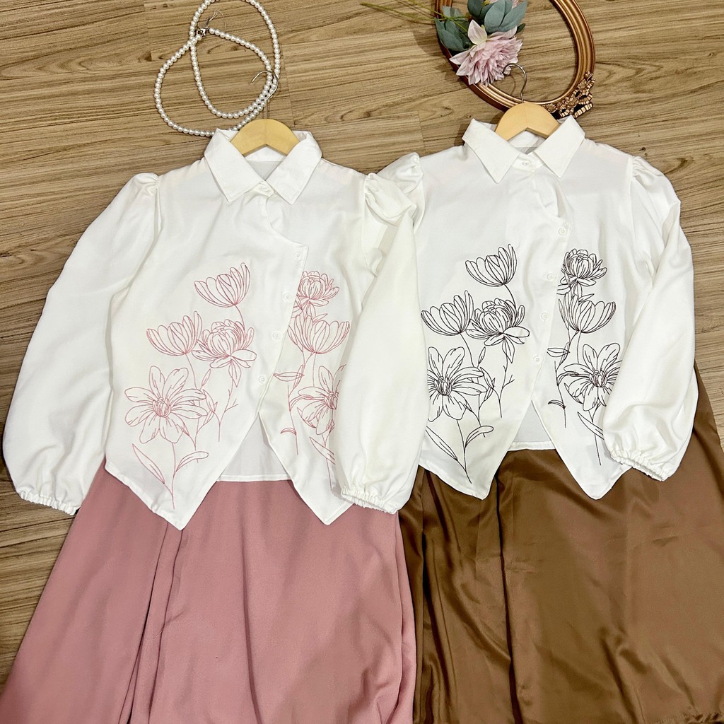 NJW - DHIVA CHOICE - SETELAN WANITA WILLY BLOUSE BRODIR DAN ROK MIDI - SETELAN WANITA