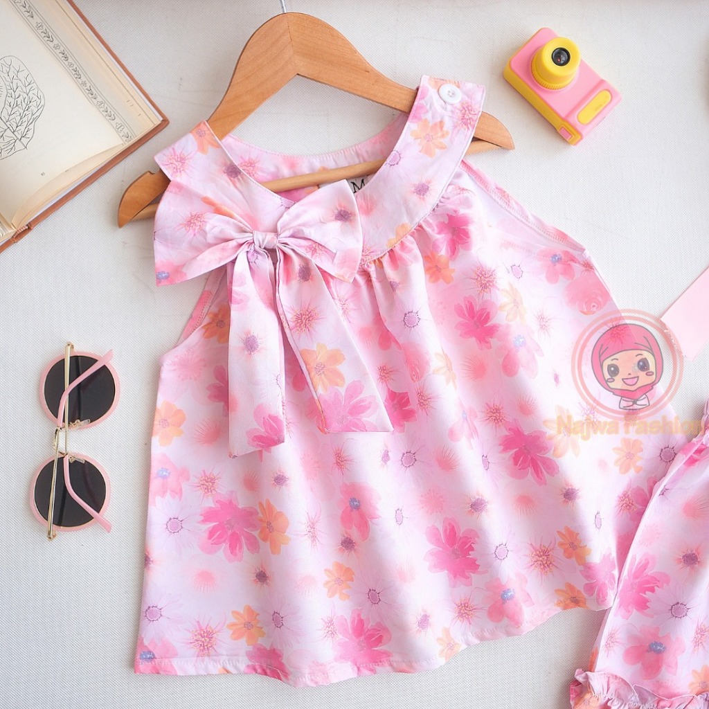 NAJWA - Setelan Anak Perempuan Bilky Motif Bunga Terlaris / Fashion Oneset Anak Perempuan Atasan dan Celana Pendek Santai Terbaru