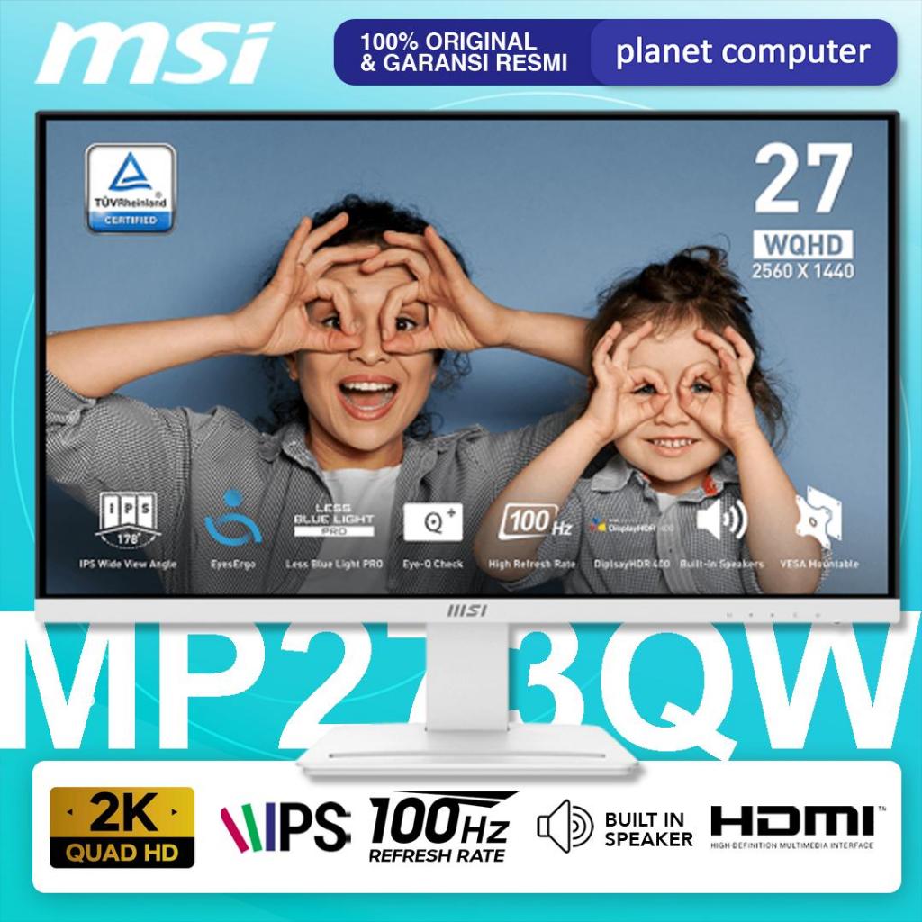 MSI Pro MP273QW E2 Monitor LED 27" IPS 1440p QHD 2K 100Hz White Putih Speaker HDMI