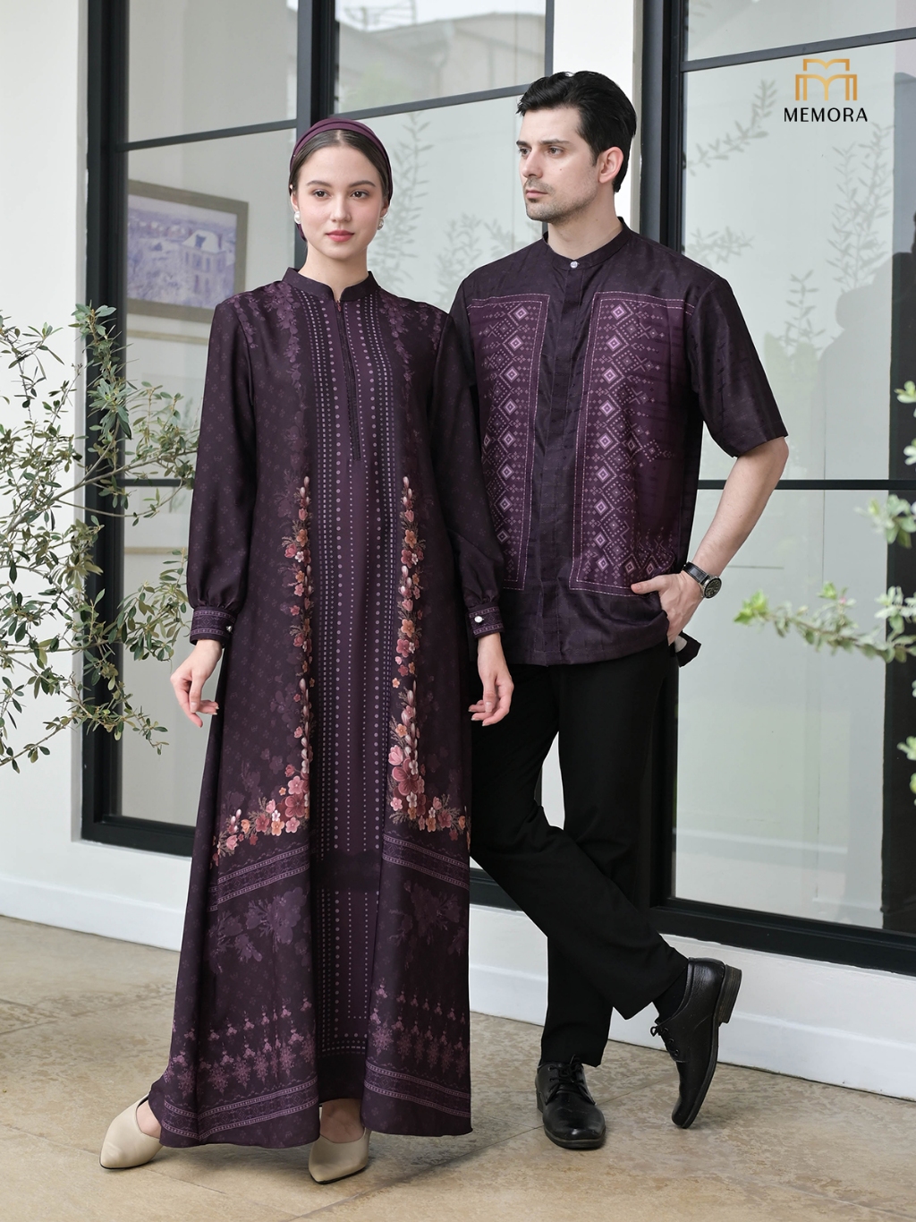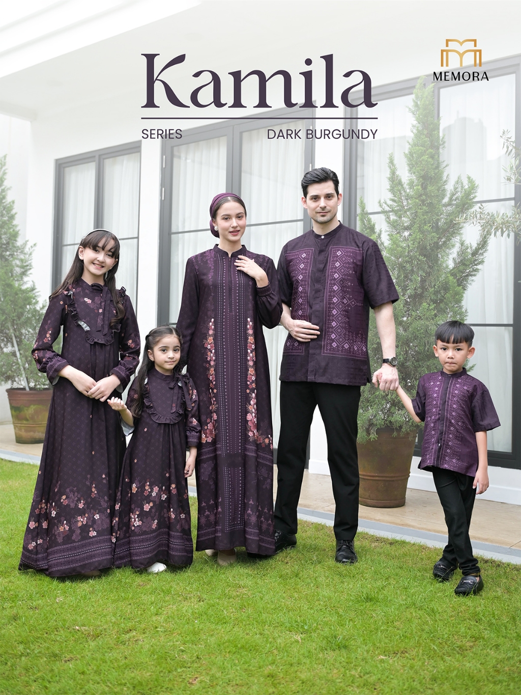 Baju Couple Pasangan Lebaran 2026 Series KAMILA DARK BURGUNDY By Memora - Baju lebaran 2026 Couple Keluarga - Original Amanah - Sarimbit Lebaran 2026