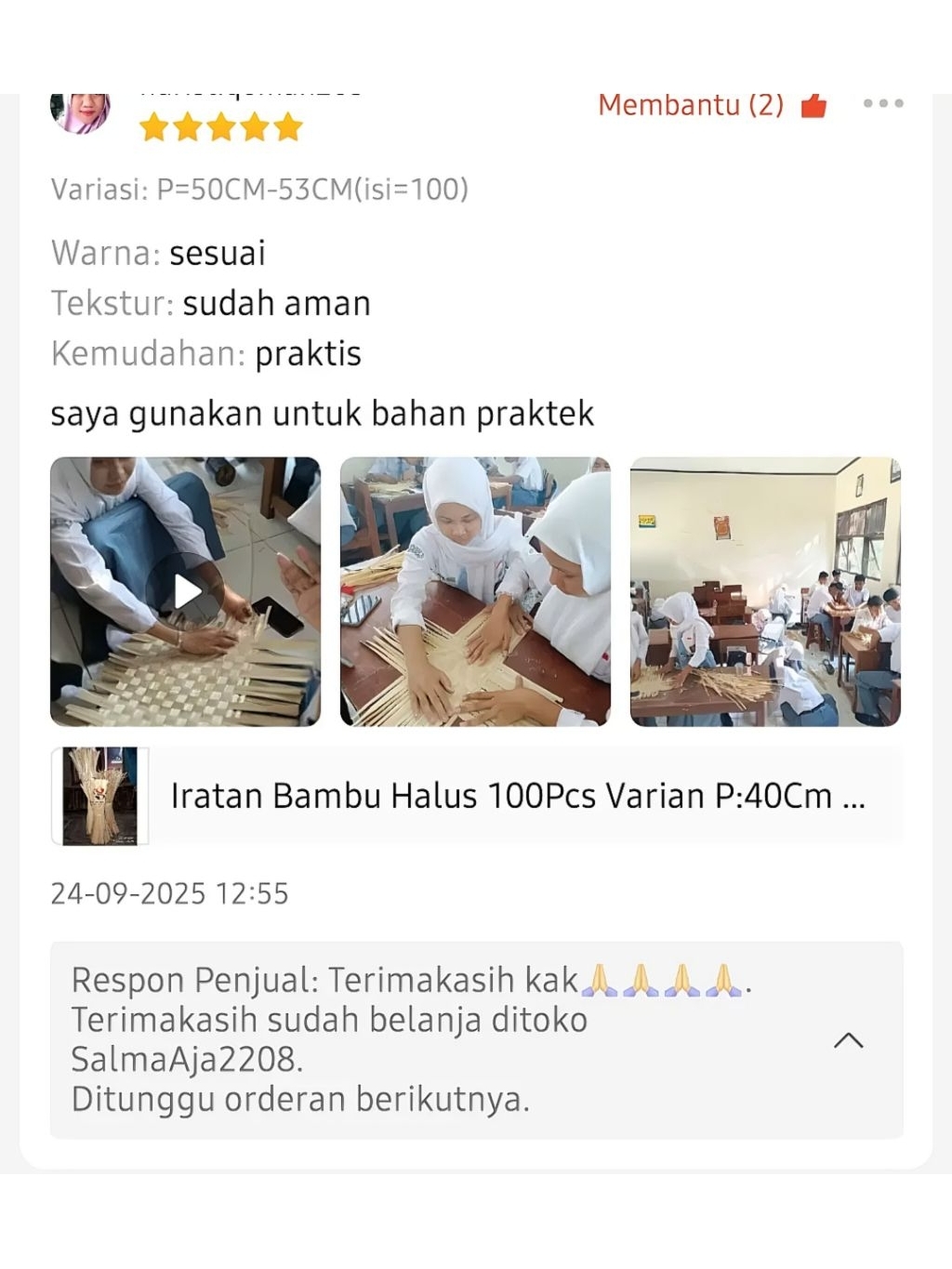Iratan Bambu 100Pcs Rapi & Halus All Ukuran Panjang 20Cm 30Cm 35Cm 40Cm 45Cm 50Cm 55Cm 60Cm 65Cm 70Cm Bahan Anyaman Kerajinan Siap Pakai