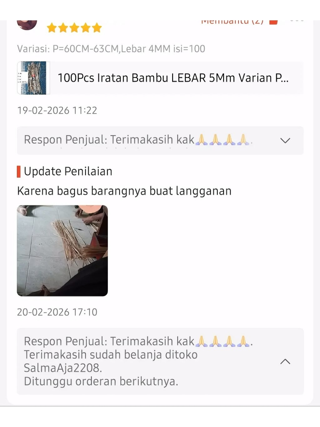 100Pcs Iratan Bambu LEBAR 5Mm Varian P=50CM P=60Cm Tebal=0,3Mm Iratan Besek Bambu Bahan Anyaman Kerajinan Prakarya BERSIH DARI SERABUT