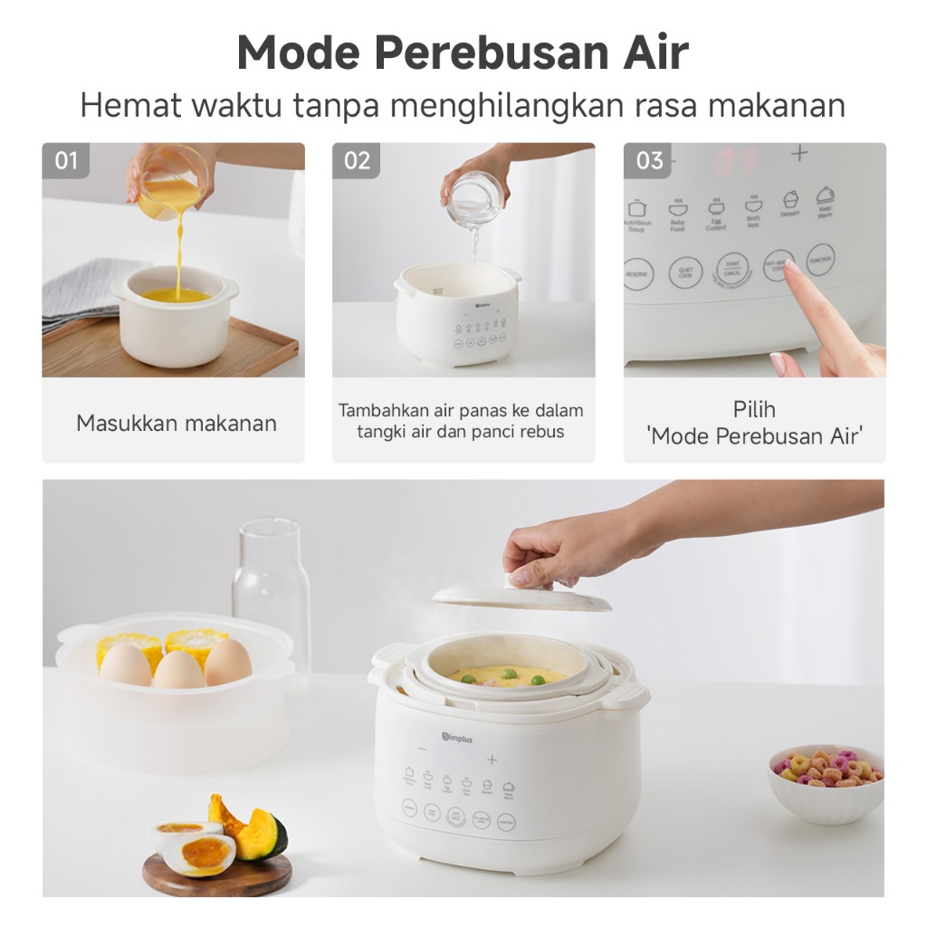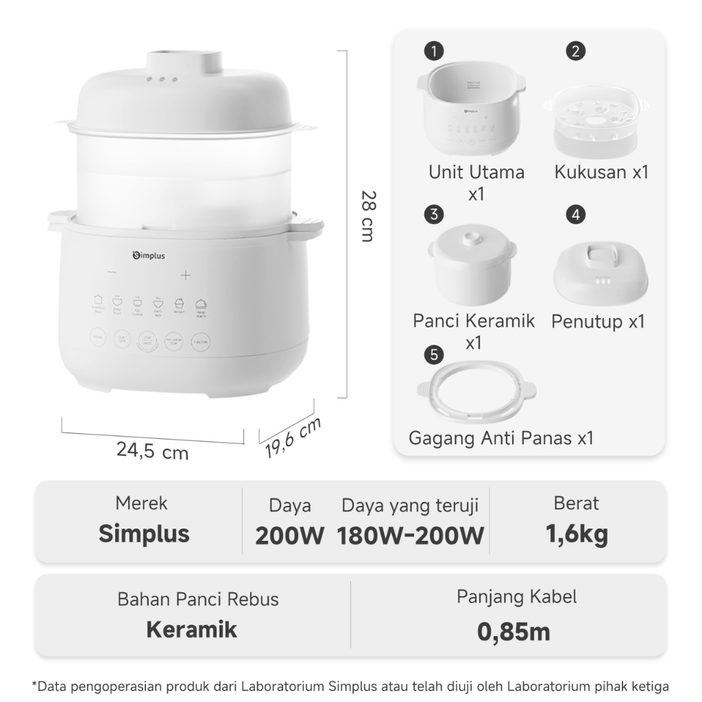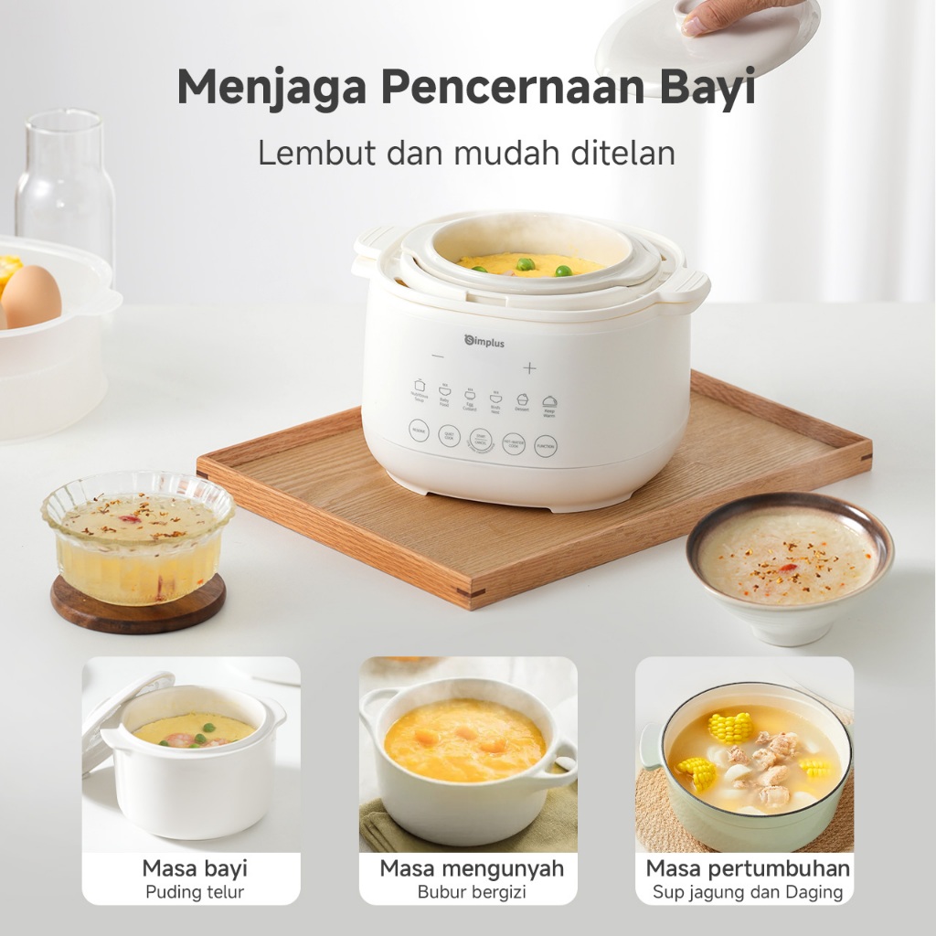 Simplus Slow Cooker Listrik 1L Panci Rebus dan Kukus dengan Menu Preset Cerdas untuk MPASI Bubur Bayi
