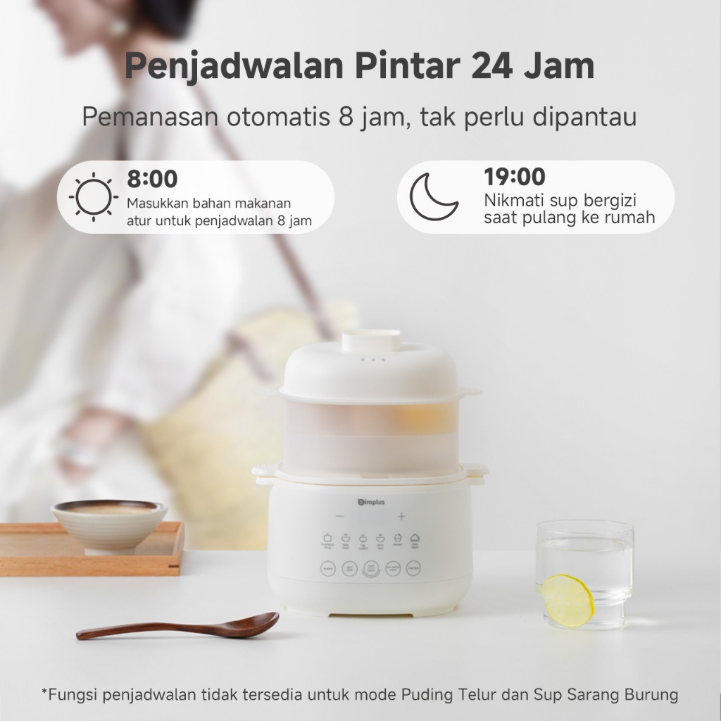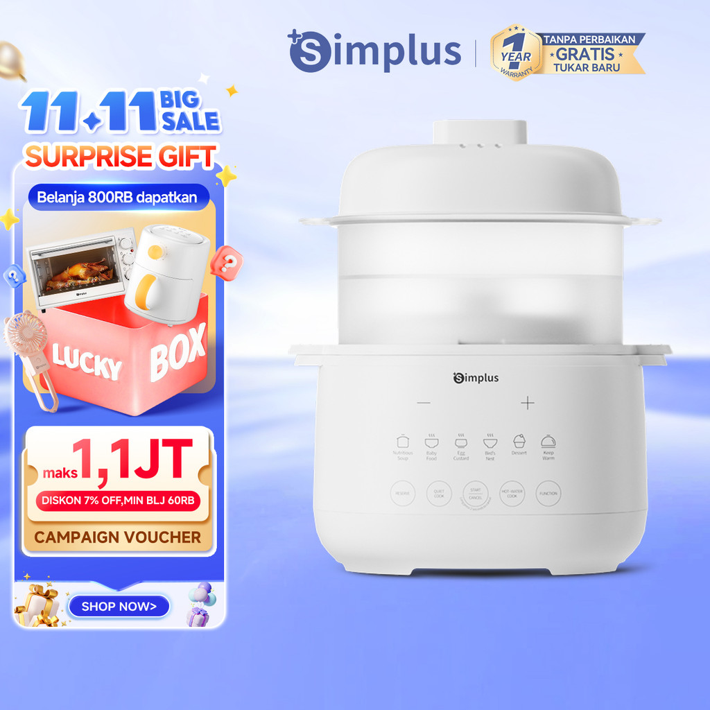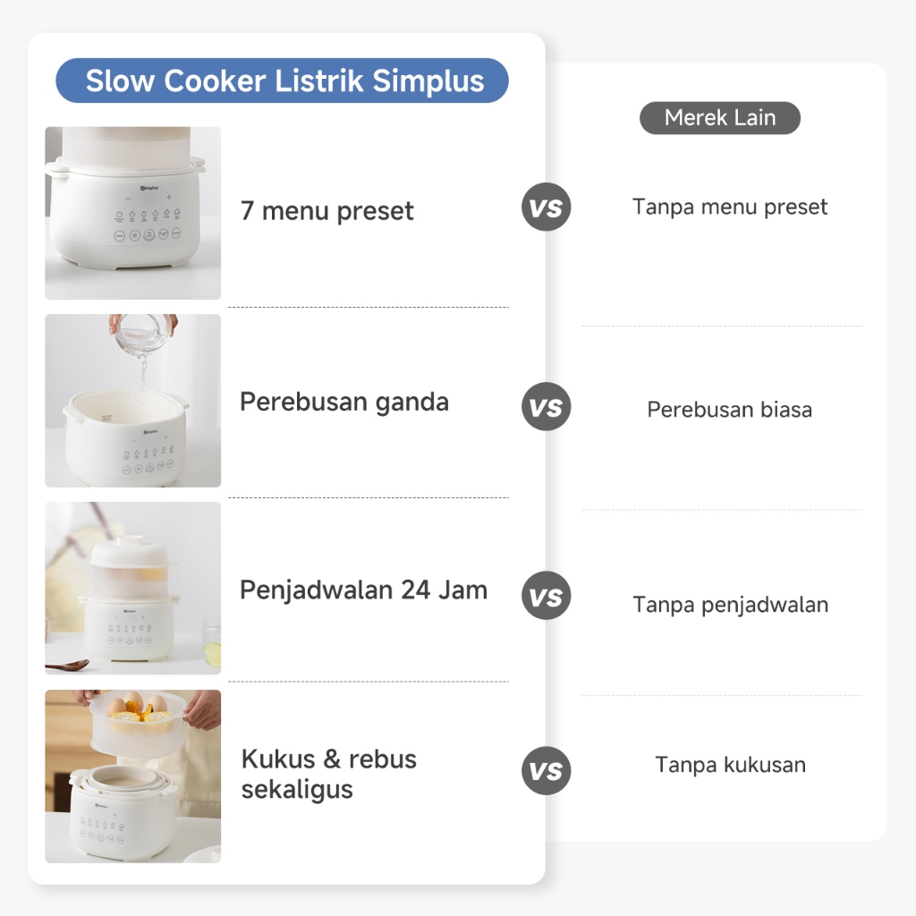 Simplus Slow Cooker Listrik 1L Panci Rebus dan Kukus dengan Menu Preset Cerdas untuk MPASI Bubur Bayi