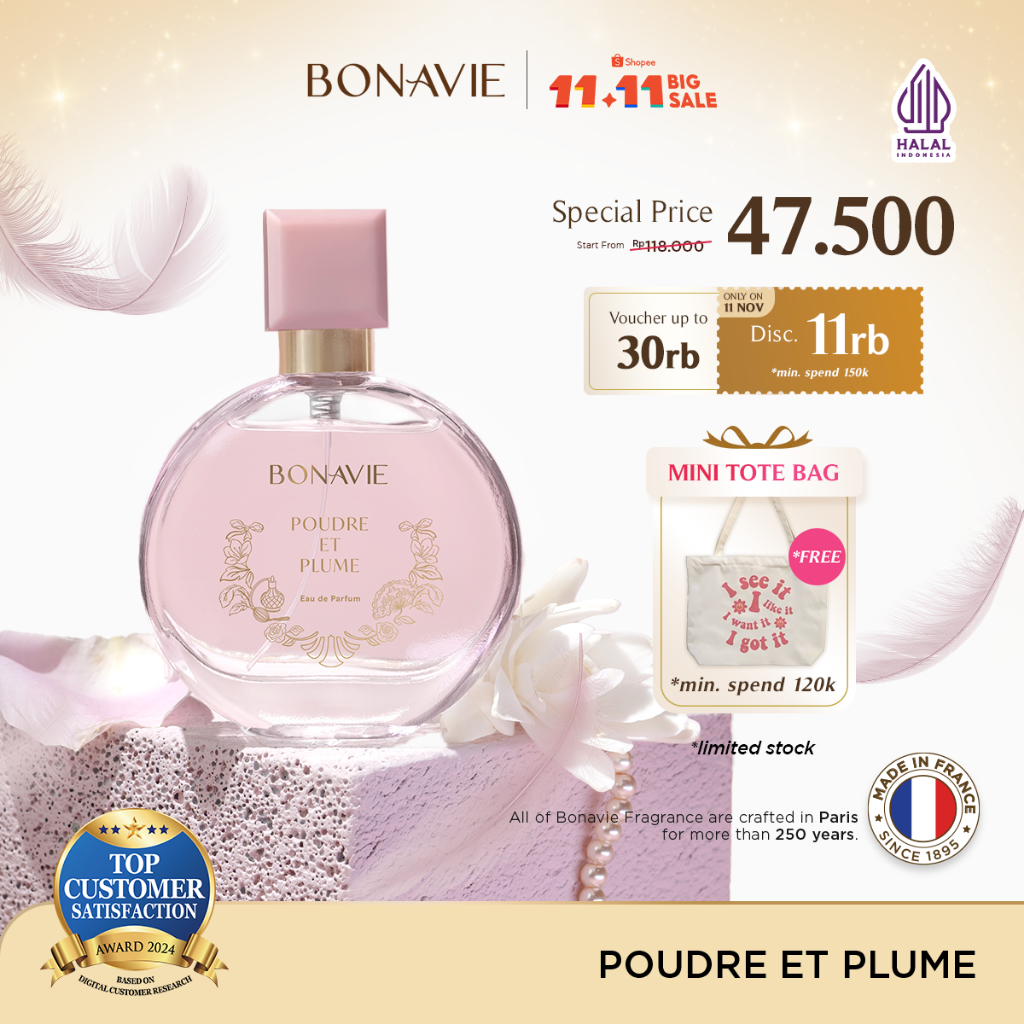Bonavie Eau de Parfum - Poudre et Plume 30ml Parfum Wangi Tahan Lama EDP Powdery Bedak