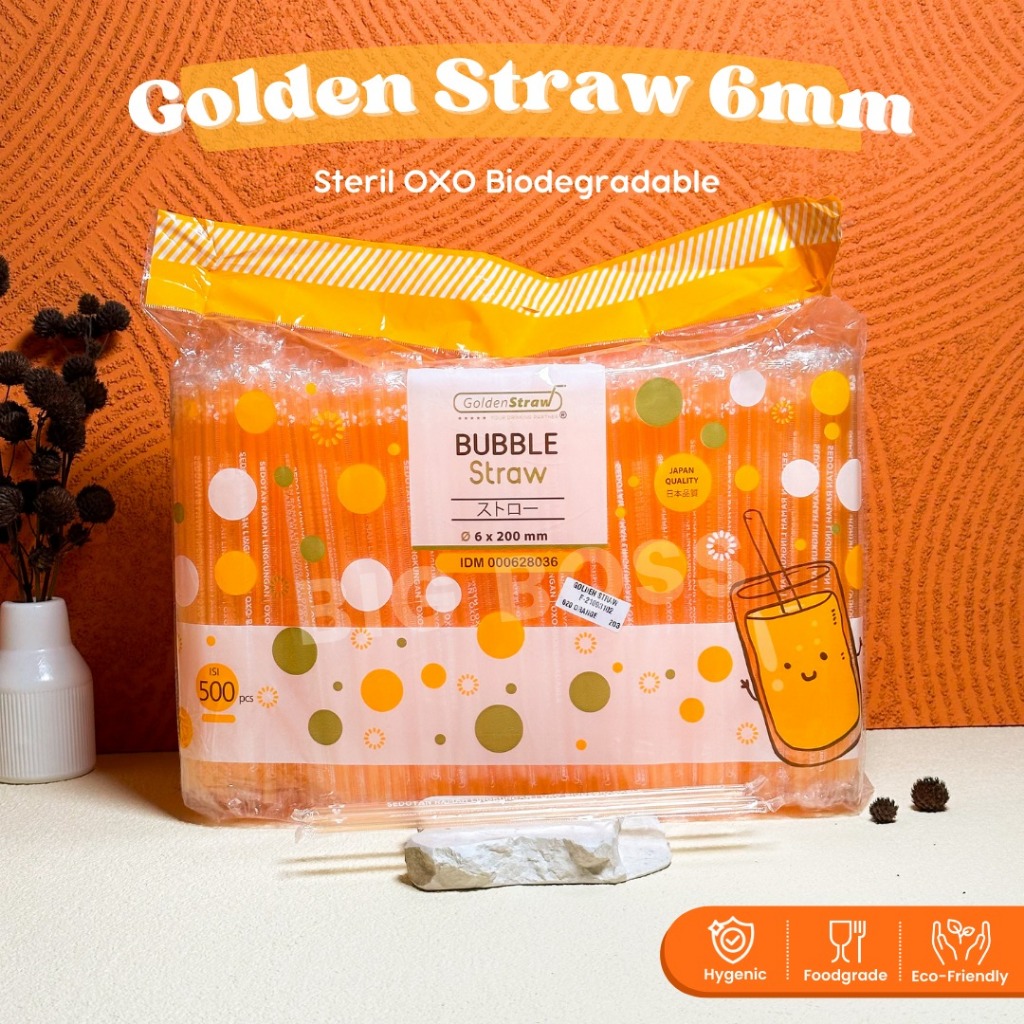 Sedotan Hitam Lancip 6mm STERIL Golden Straw OXO isi 500pcs / Sedotan Steril OXO Warna Warni