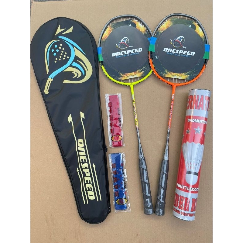 Raket Bulutangkis Original Onespeed Paket Lengkap Raket + Tas + Grip + Shuttlecock