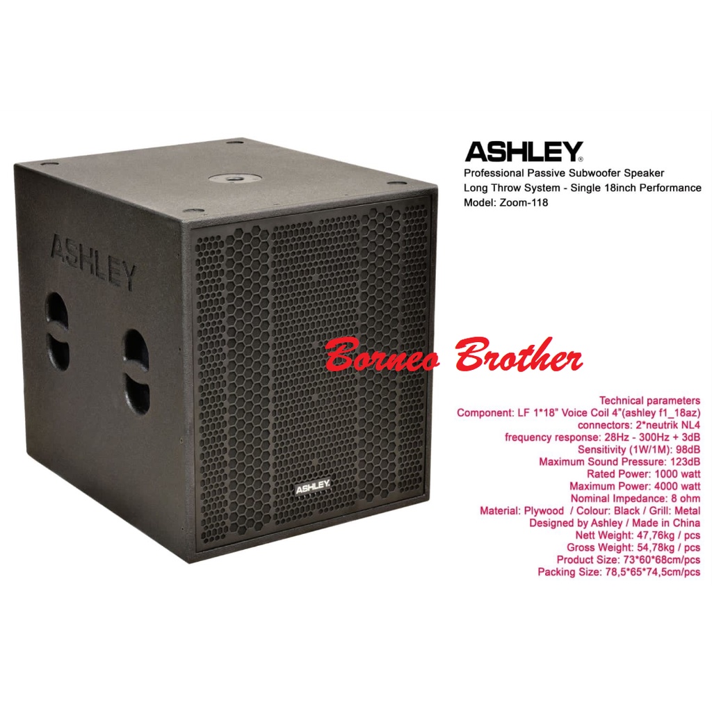 Ashley Zoom-118 Zoom 118 Original Subwoofer Pasif 18 Inch 4000W 1 Unit