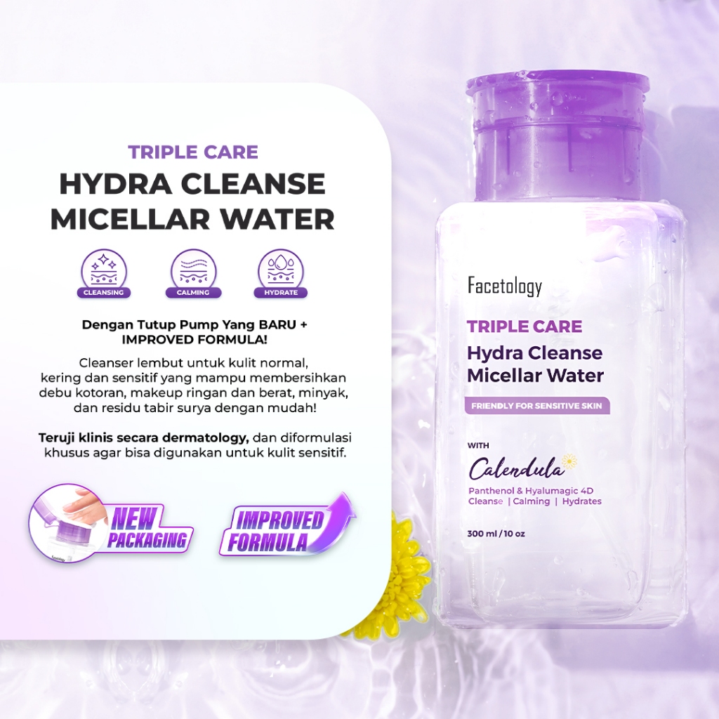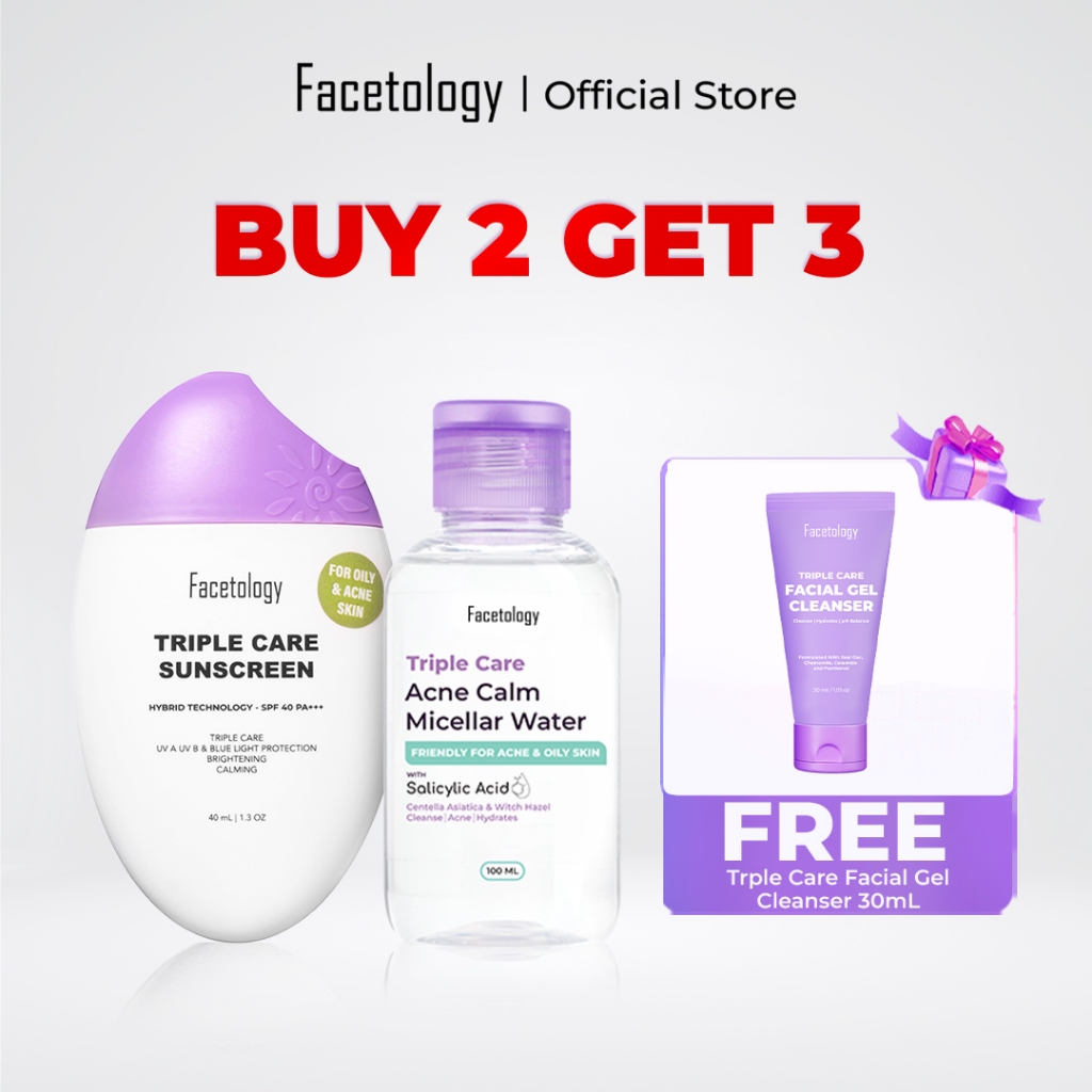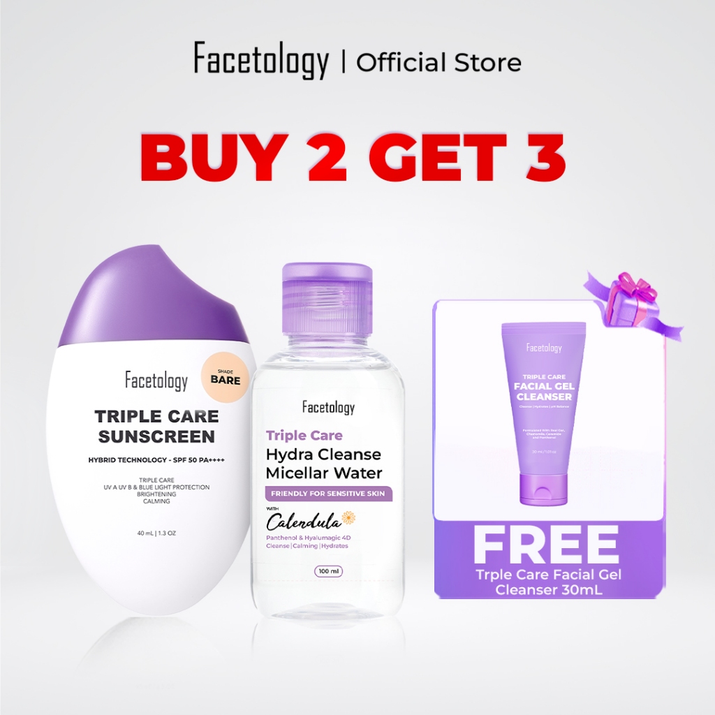 [Free Facial Gel 30ml] Facetology Bundling Triple Care Micellar Water 100ml & Triple Care Sunscreen Spf 40 Pa+++ 40ml