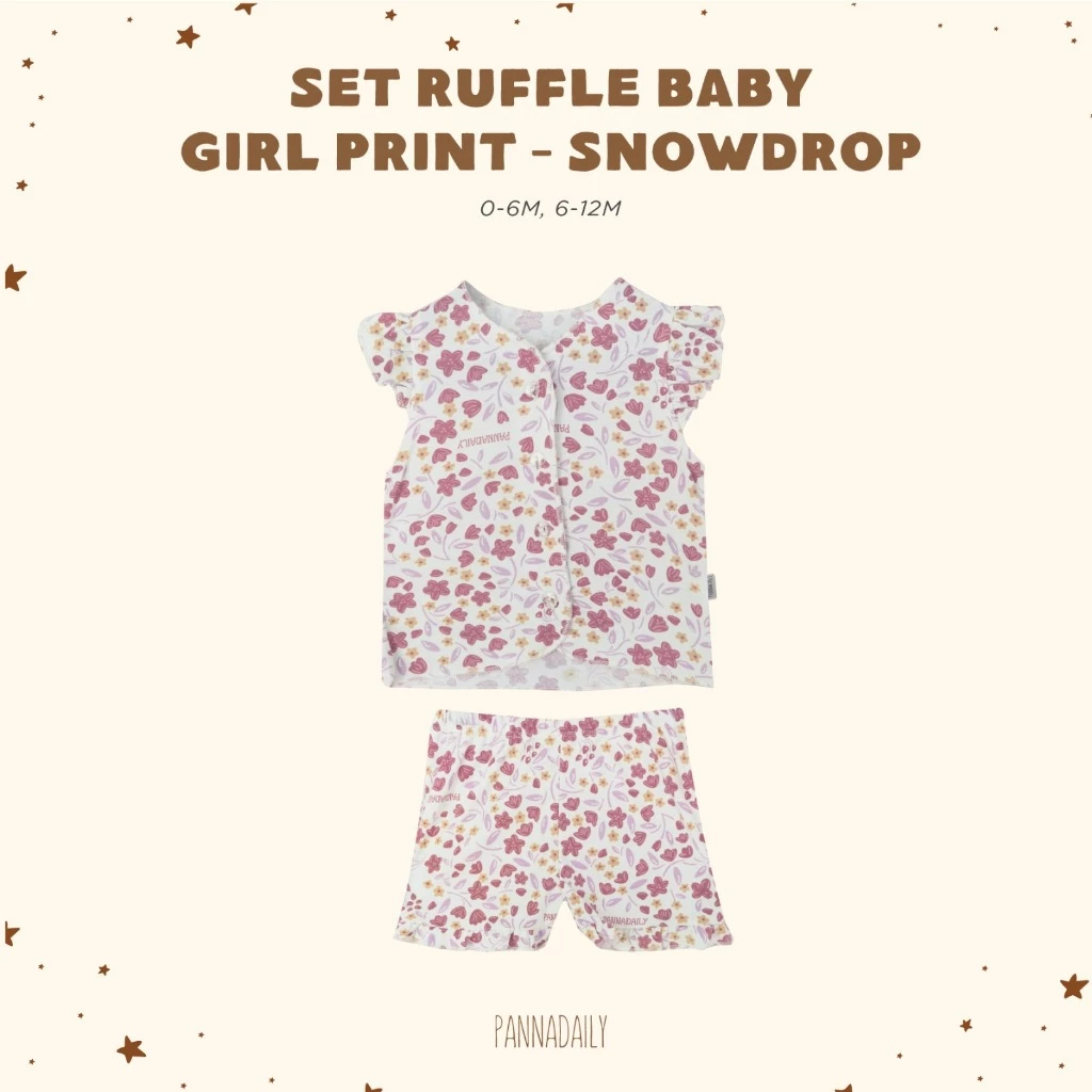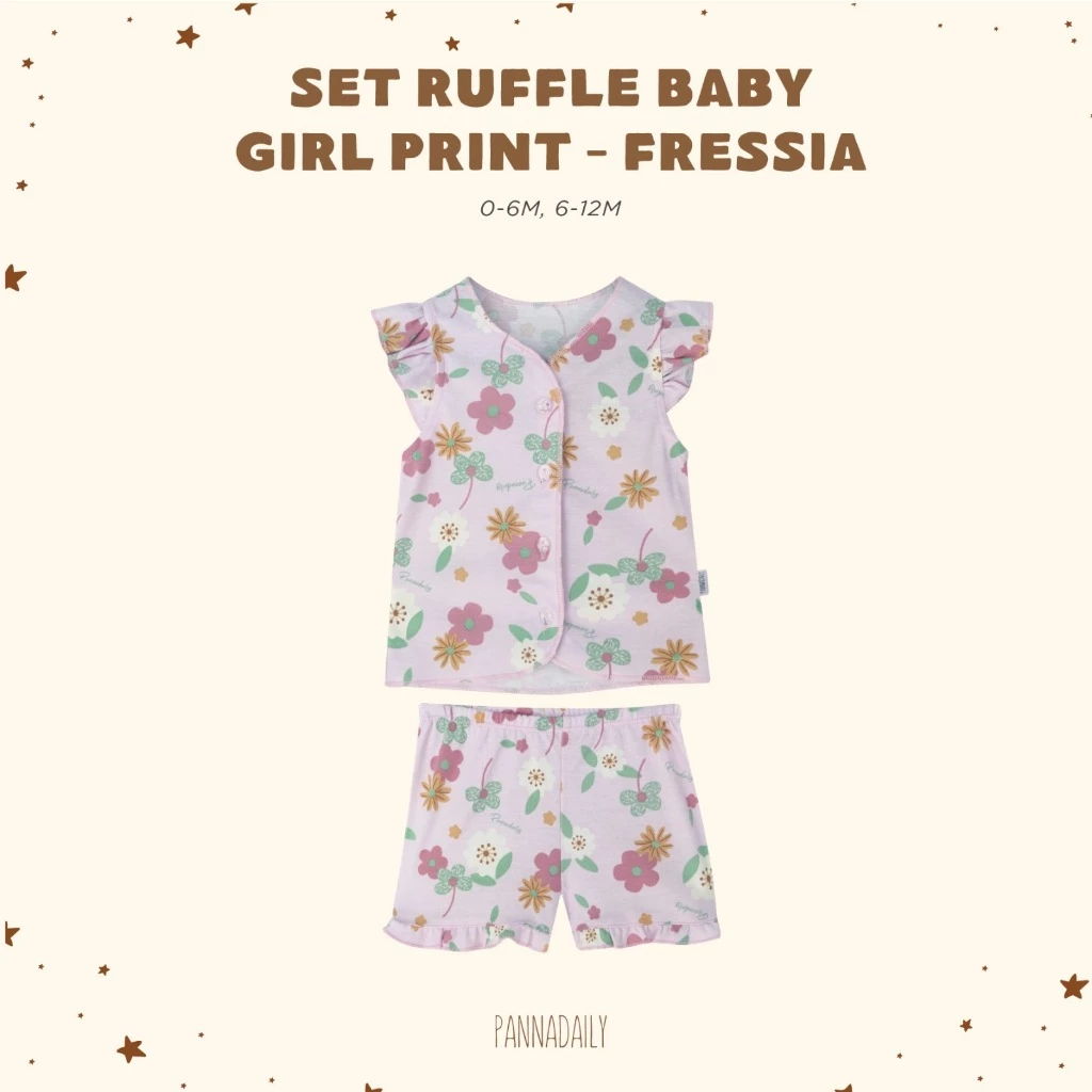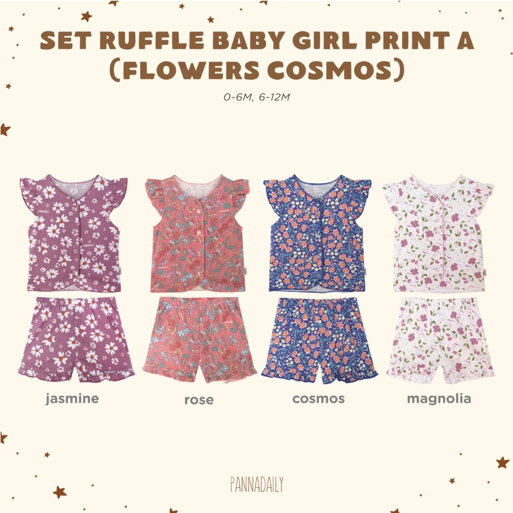 PANNADAILY - Ruffle Set Pendek Anak Bayi / Setelan Pendek Kancing Depan Motif Bunga 0-12 Bulan