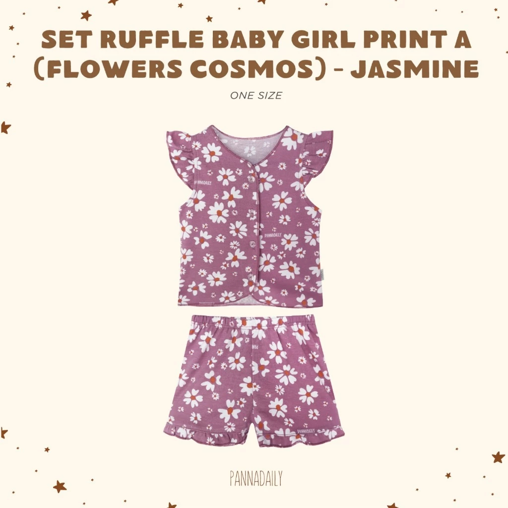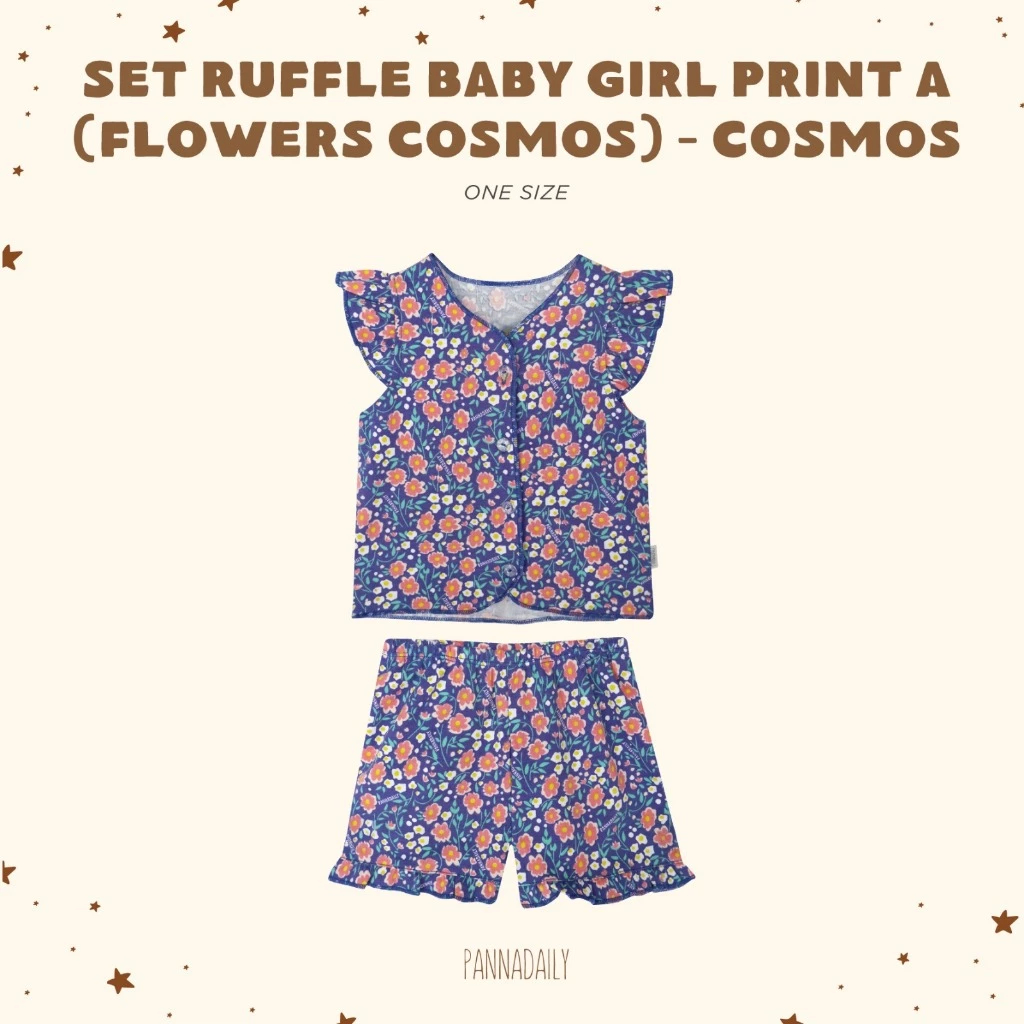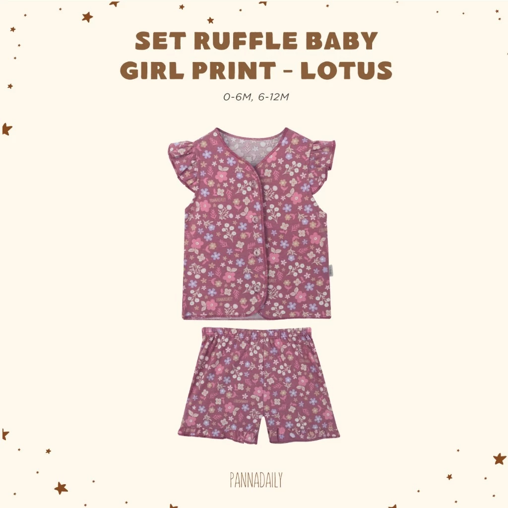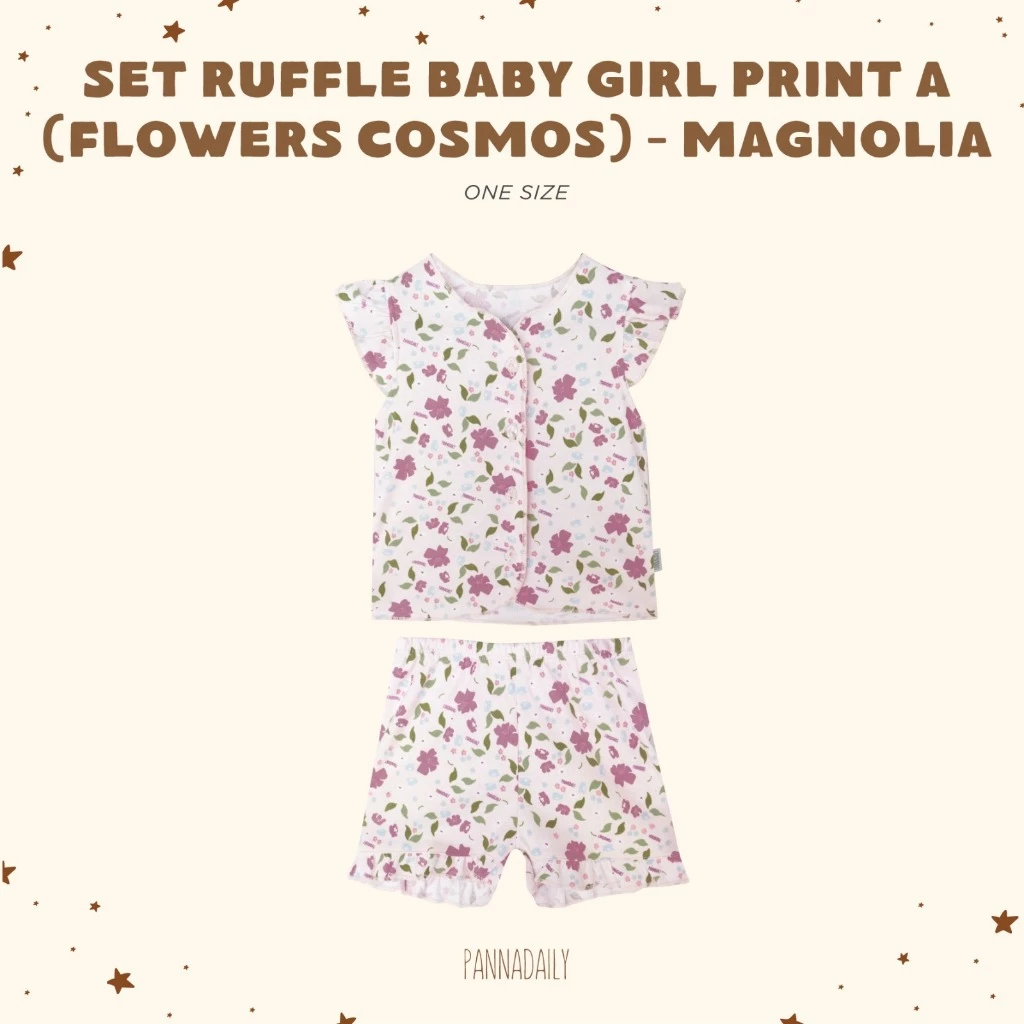 PANNADAILY - Ruffle Set Pendek Anak Bayi / Setelan Pendek Kancing Depan Motif Bunga 0-12 Bulan