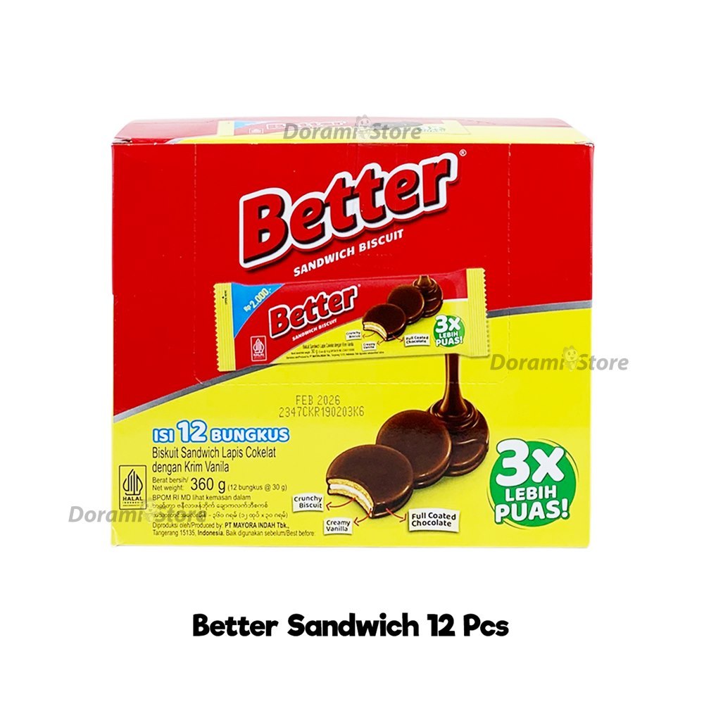 Better Sandwich Biscuit Mini Box Isi 12x30gr / Cemilan Biskuit Mini Berlapis Coklat