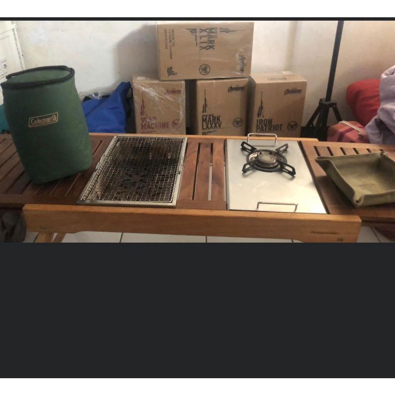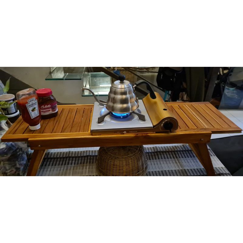 Meja Camping Meja Sliding Lipat Dengan Dua Tempat Kompor Meja Outdoor Portable