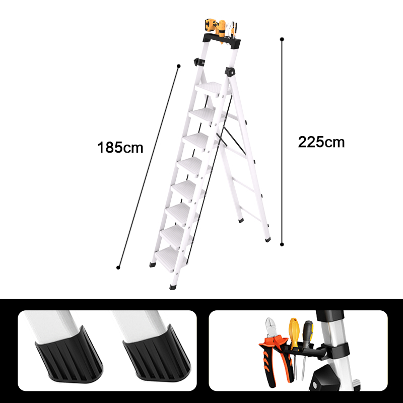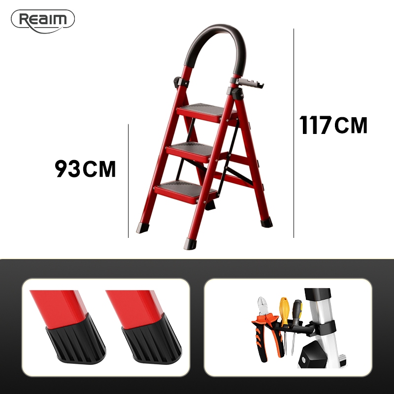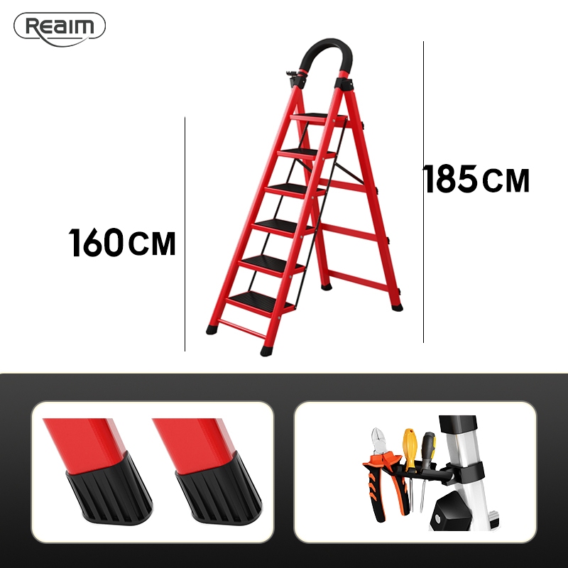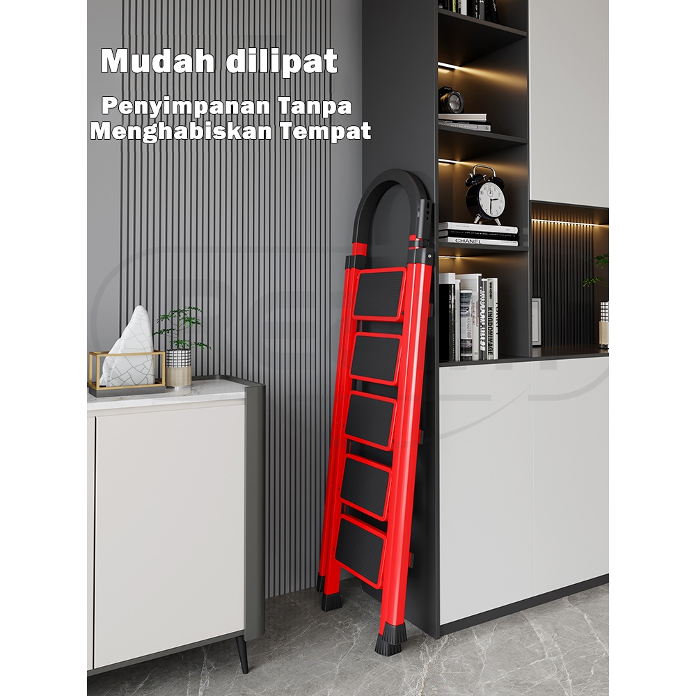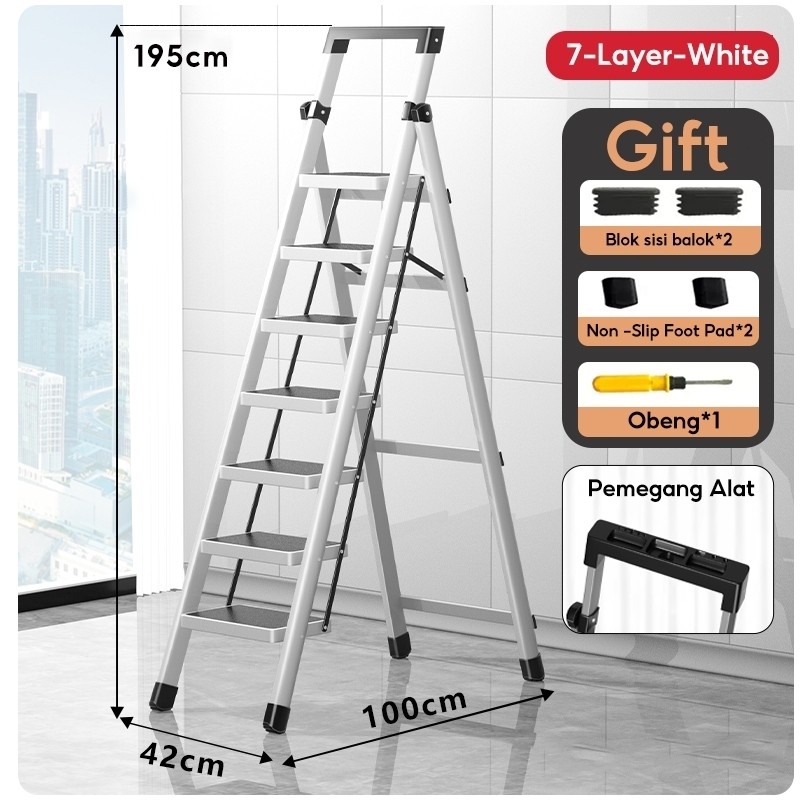 Reaim Tangga Lipat Multifungsi 2-8 Step Tangga Lipat Aluminium Baja Karbon Tebal Anti Licin Pegangan Tangan Tangga Bisa Dilepas