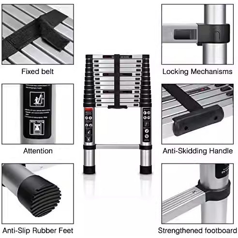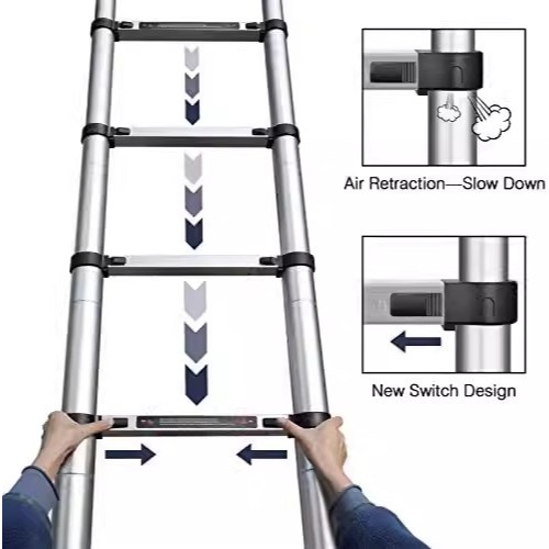 Reaim - 5m Tangga Teleskopik - Portabel Tangga Aluminium Tangga Teleskopik Single / Tangga Teleskopik tanpa lekukan / Menebal 5 M Tangga Teleskopik Berkualitas Tinggi Ukuran:3.4 meter l 4.2 meter l tangga teleskopik 6 meter (3m+3m) l 5 Meter (2.5m+2.5m)