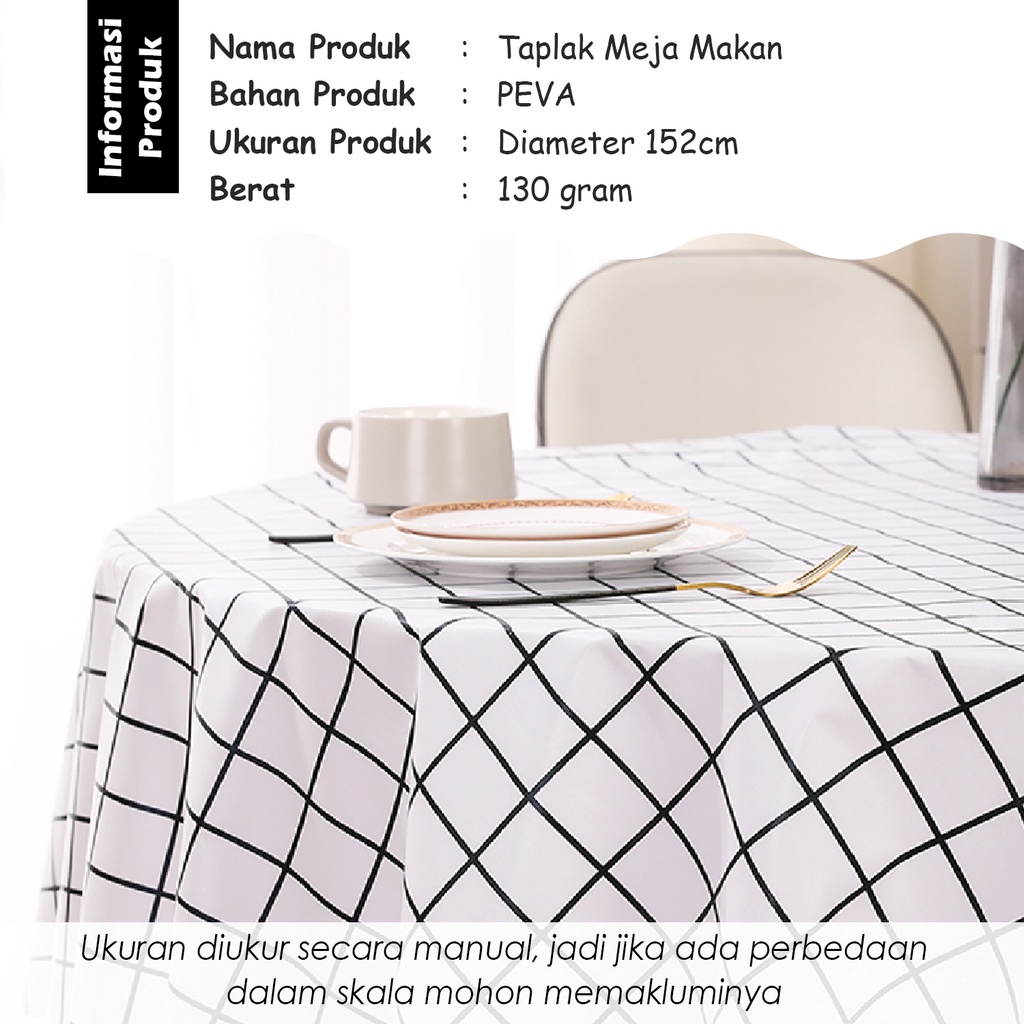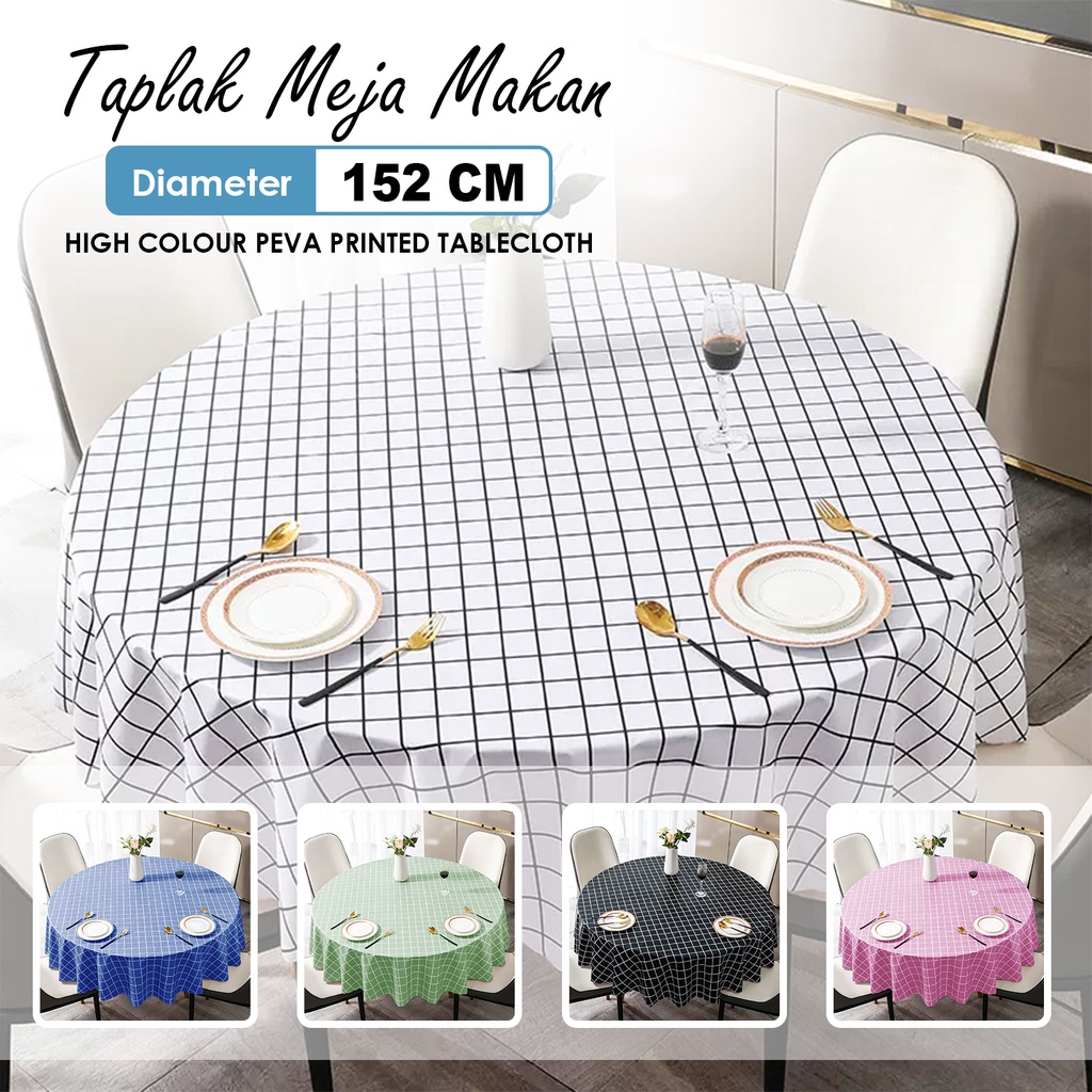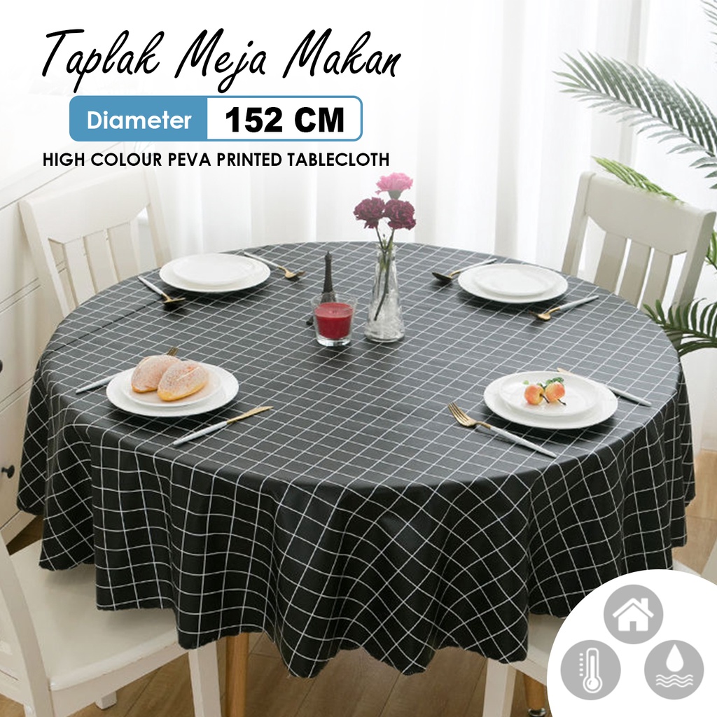 Taplak Meja Tamu Makan Bulat Bundar Anti Air Ukuran 152cm Bahan PVC Ruang Premium