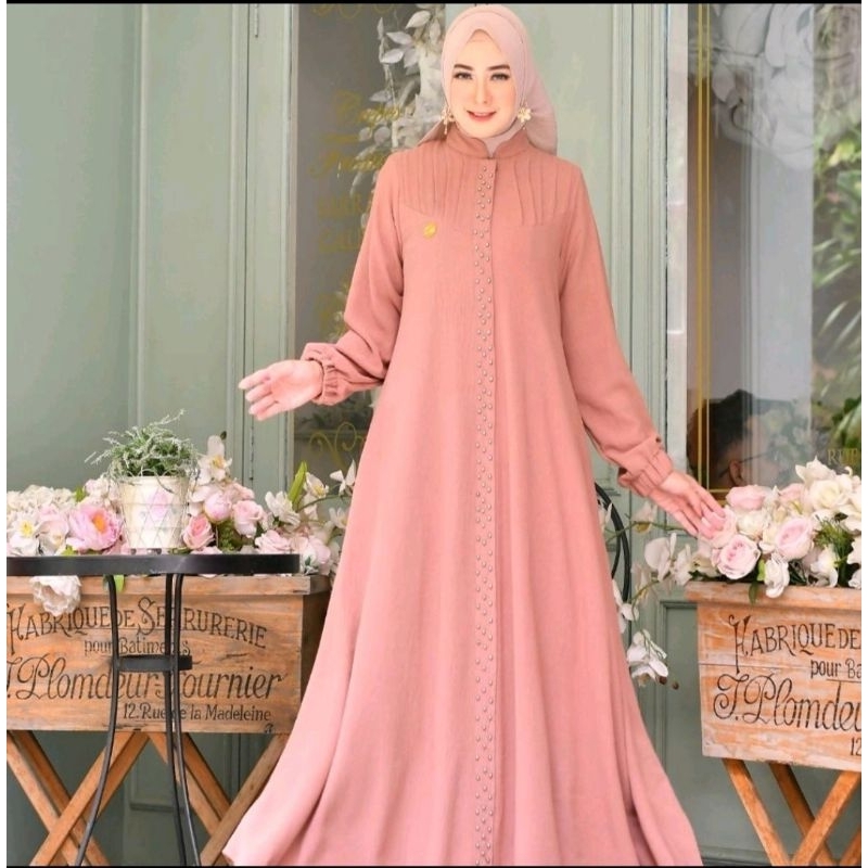 Bidadari Butik Gamis Turki Jumbo Premium Crinkle Viral 2023 LD 110 Sampai 120 Kringkle Premium Busui Gamis Kondangan Seragam Pengajian Kombinasi Mutiara Wanita Muslim