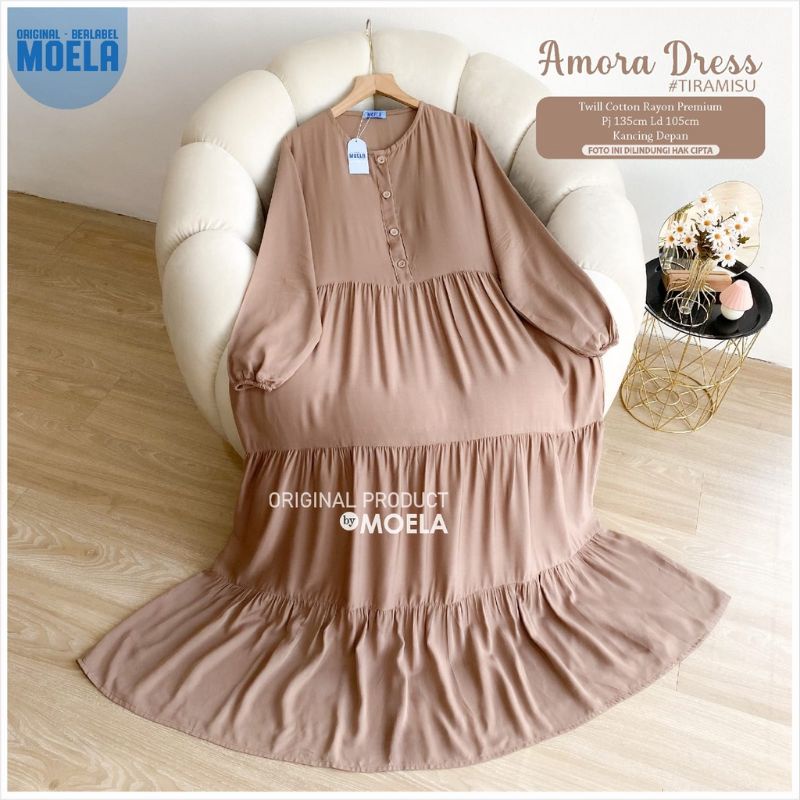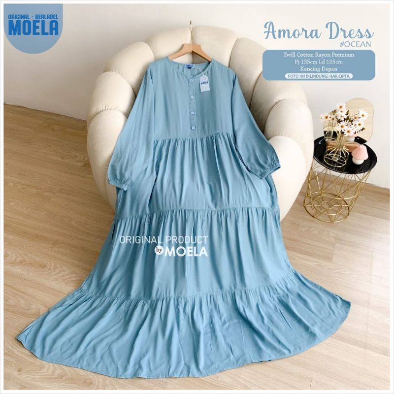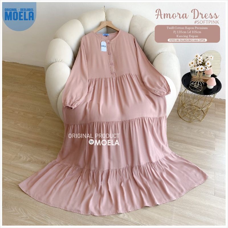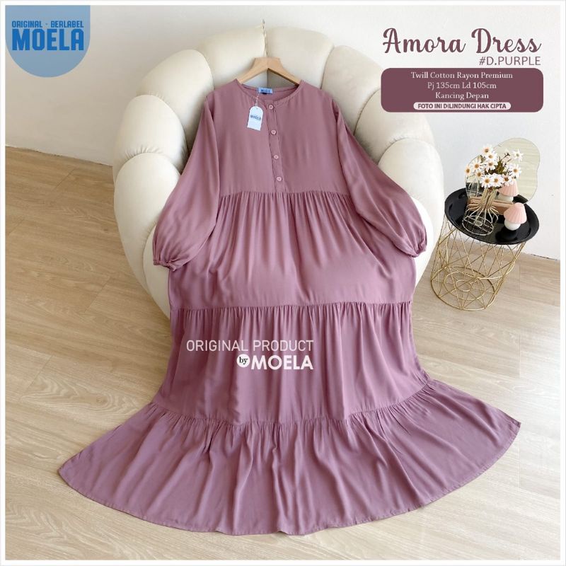 Moela Berlabel Amora Dress Maxy Motif Polos Twill Rayon Premium Pakaian Muslim Wanita