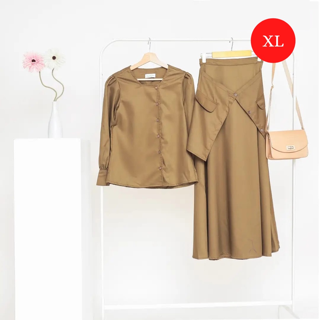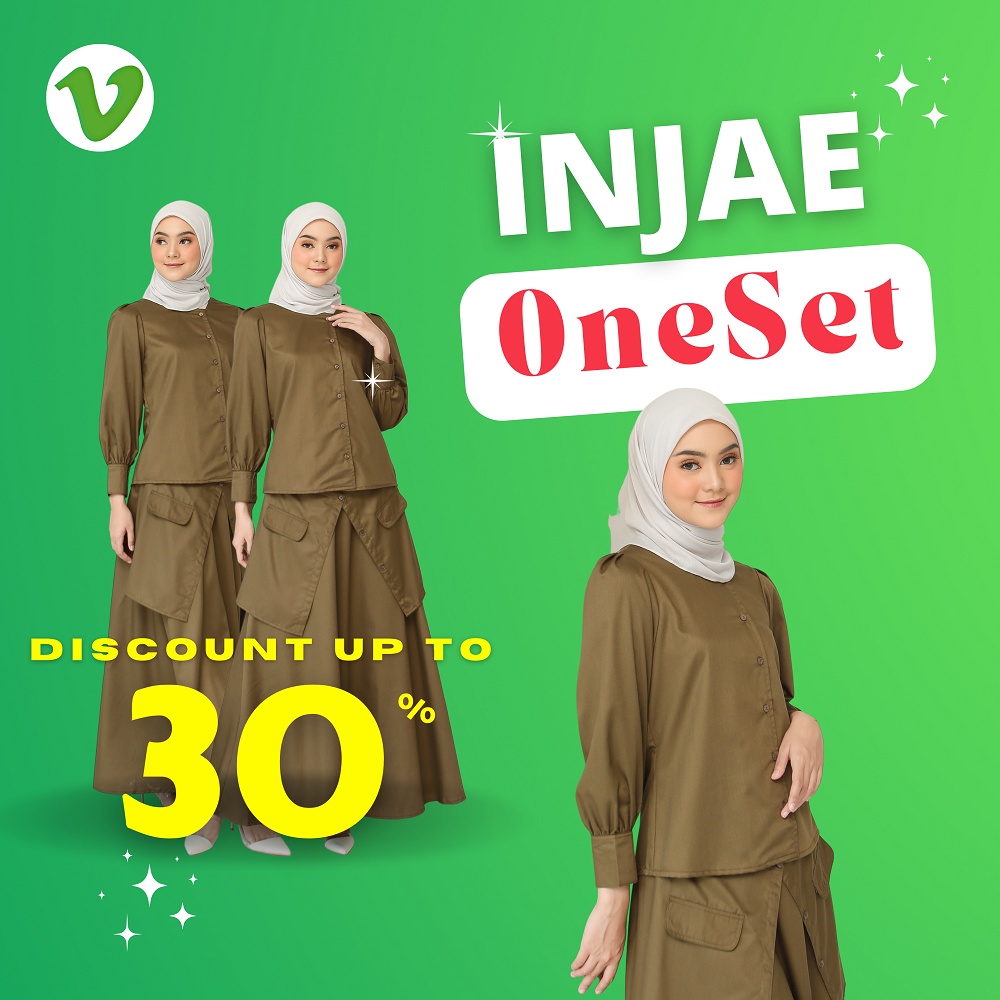 Vijab - InJae One Set Setelan Fashion Tunik Rok Celana Remaja Wanita Muslimah Korean Style Katun Toyobo Premium Terbaru