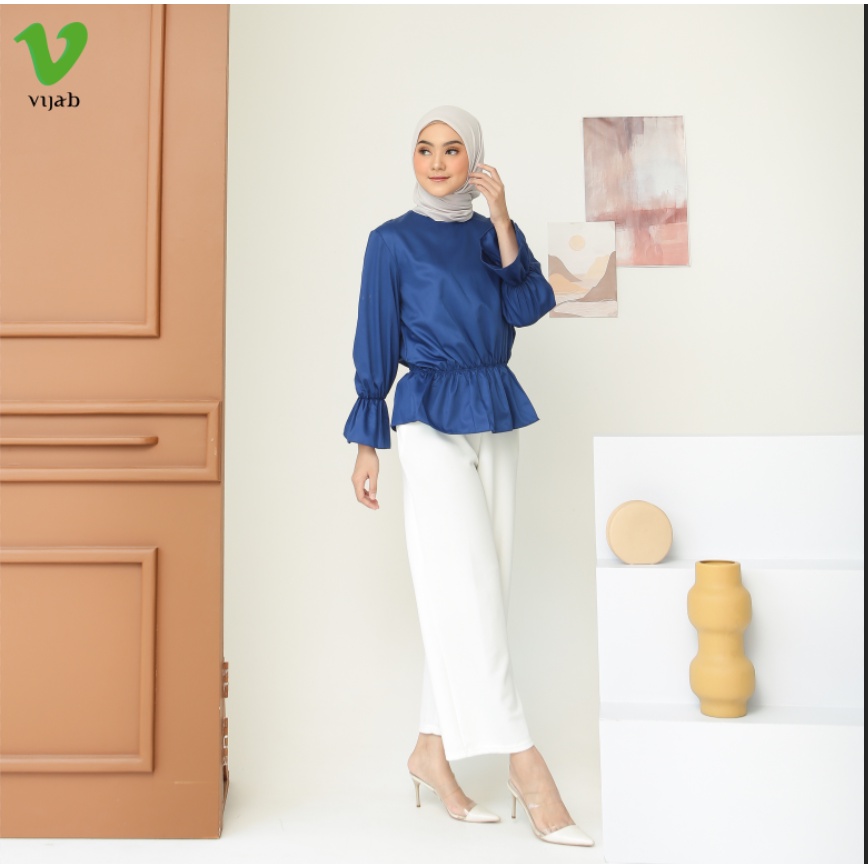 Vijab - Aecha Blouse Kemeja Fashion Remaja Wanita Muslimah Balon Lengan Panjang Korean Style Katun Toyobo Premium Terbaru