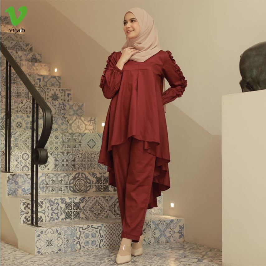 Vijab - Jenni One Set Setelan Fashion Tunik Rok Celana Remaja Wanita Muslimah Korean Style Katun Toyobo Premium