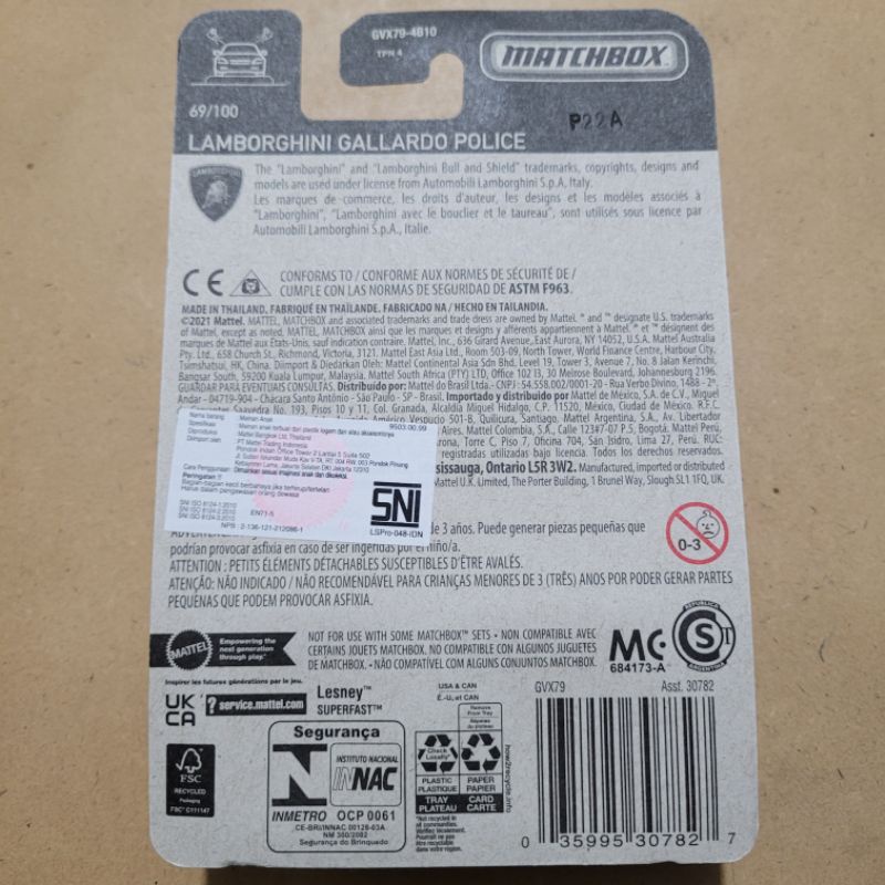 MATCHBOX LAMBORGHINI GALLARDO POLICE [ WHITE ]