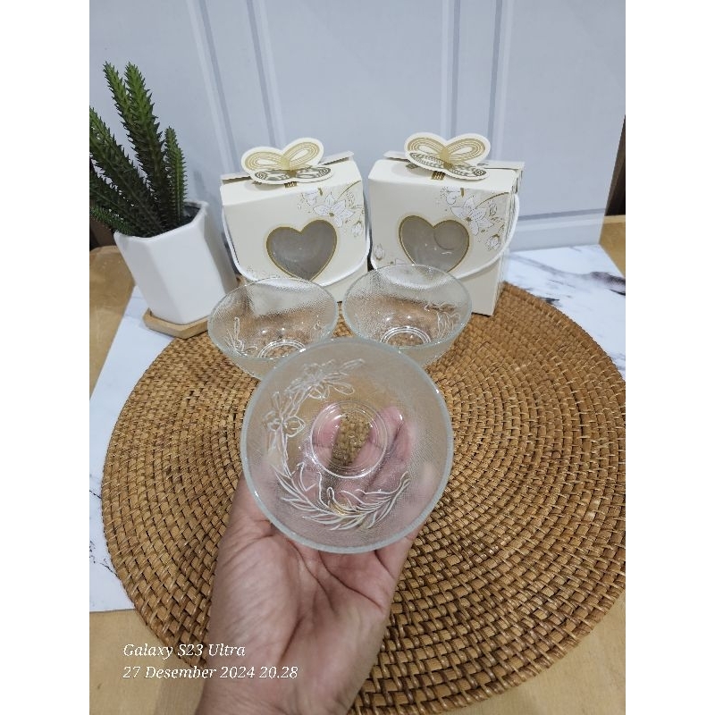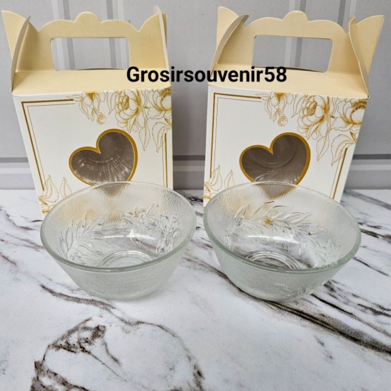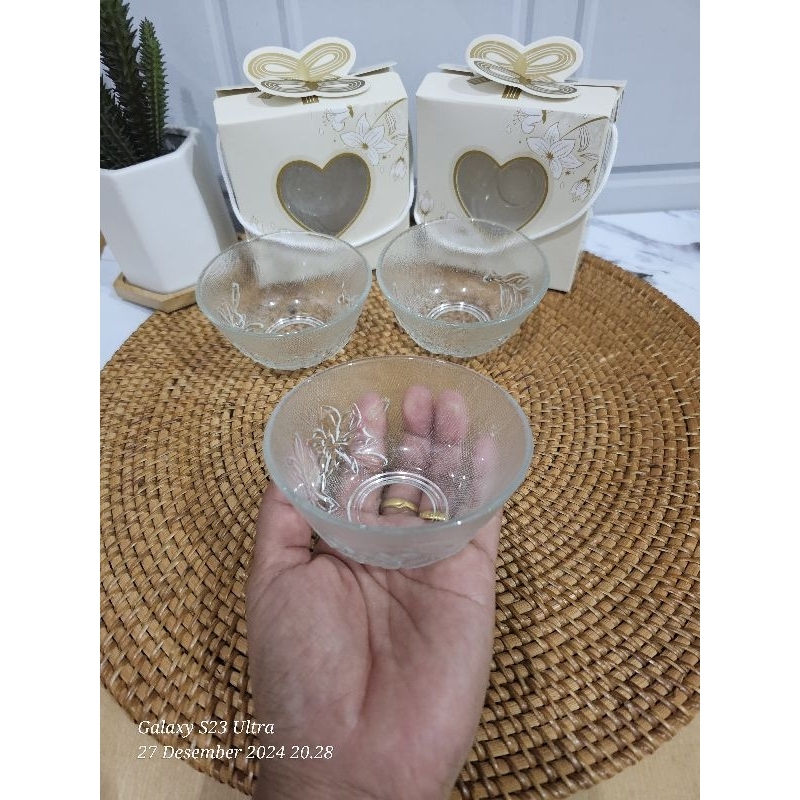 ( isi 50pcs ) MANGKOK KACA MOTIF TULIP LIL 375 KEMASAN BOK