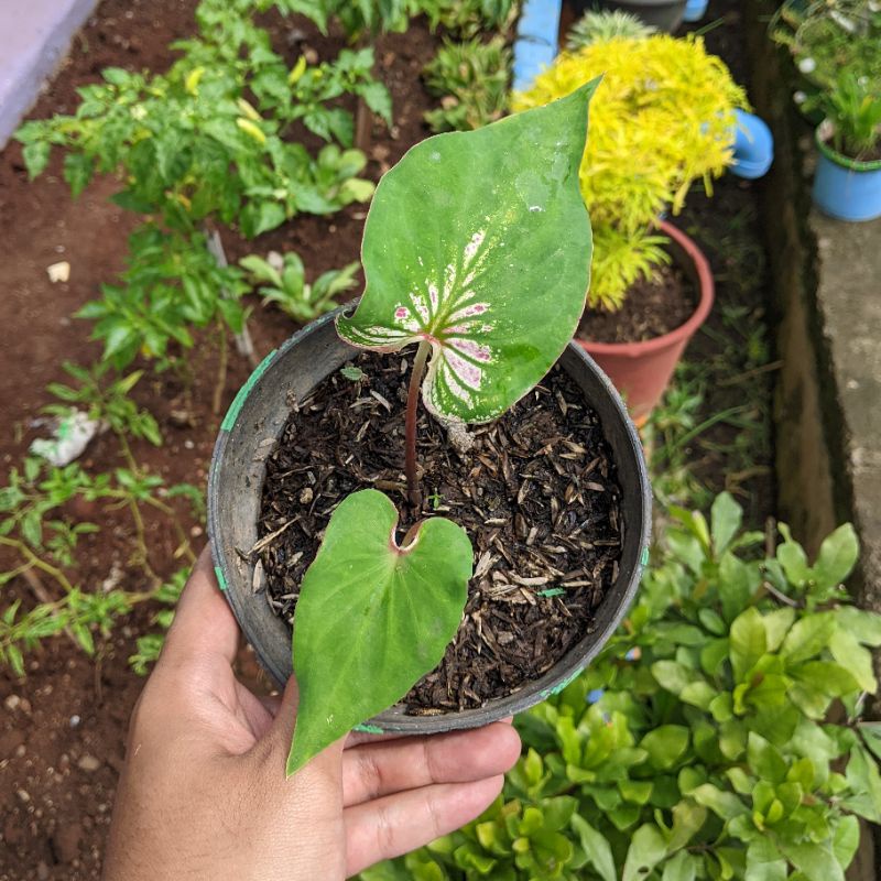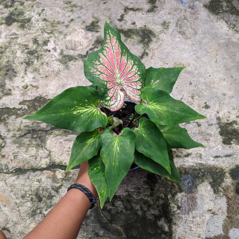 Caladium Thai Beauty Tanaman Hias Keladi Pink Symphony warna full pink