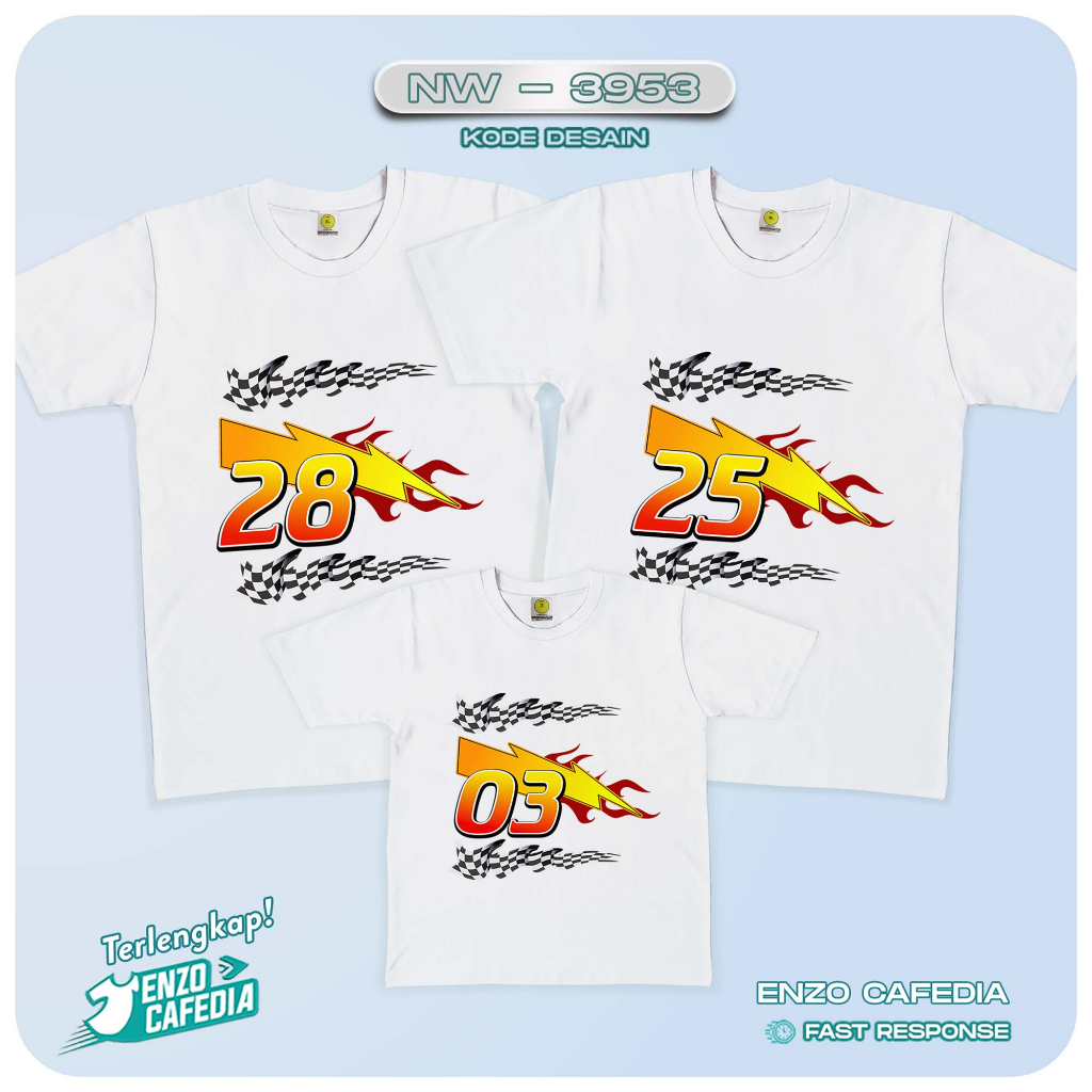 Baju Kaos Couple Keluarga | Kaos Family Ulang Tahun | Kaos Ultah Anak Tema Cars NW 3953 | Gratis Ganti Nama dan Tulisan | Kaos Cauple Ultah Keluarga | Atasan Kapel Kapelan Family Set Sablon Custom Desain Sendiri Enzo Cafedia