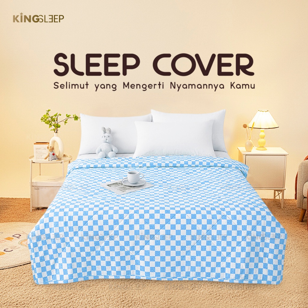 Bedcover Only Selimut Motif Catur Biru Aesthetic Slimut Bahan Microtex Hangat -King Sleep