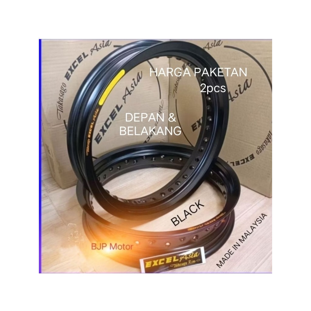 Velg Takasago Excel Asia WARNA BLACK Harga Set/ 2pcs Ring 17 (Depan dan Belakang) 1.40 / 1.60 / 1.85 / 2.50 / 3.00 / 3.50 ) (36 Hole) Original MADE IN MALAYSIA *