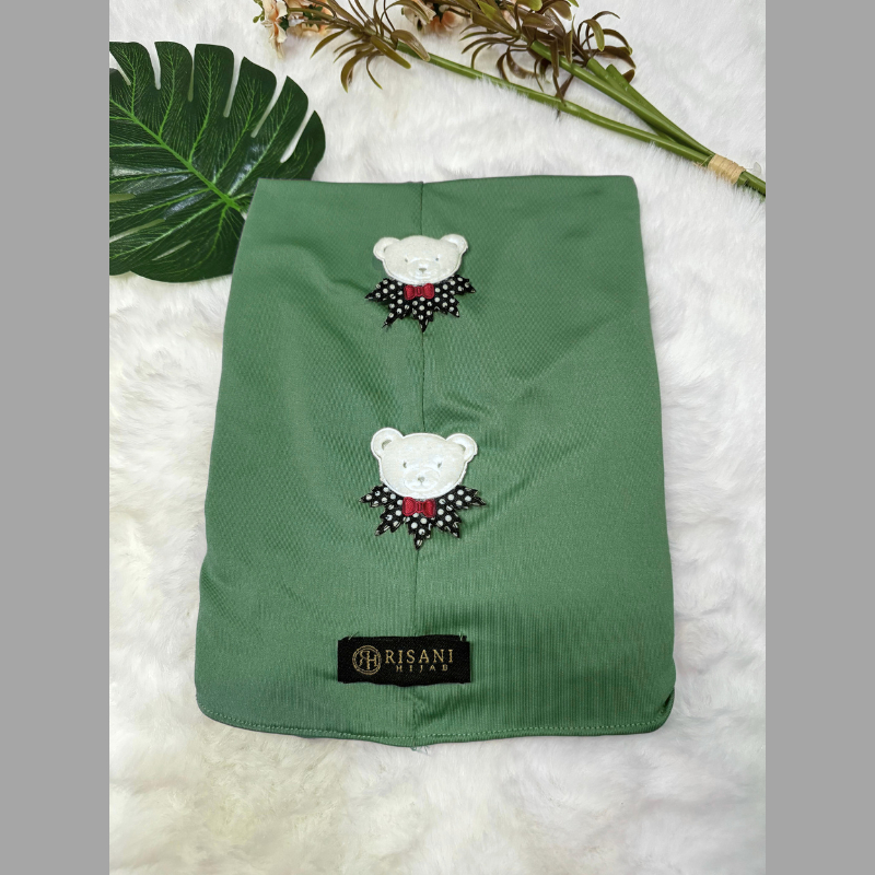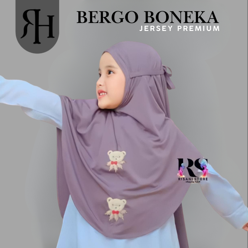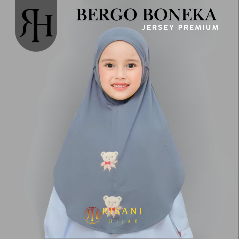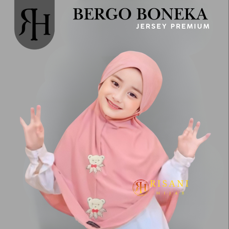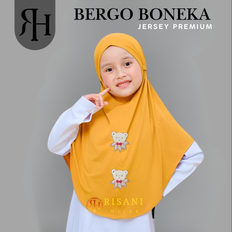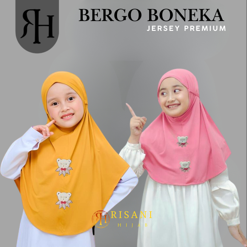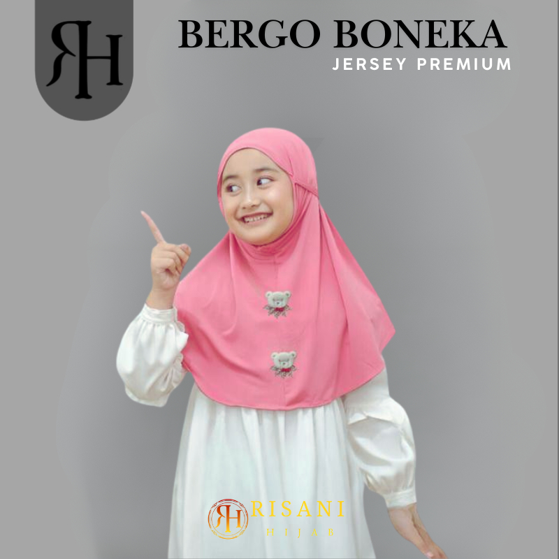 𝐑𝐢𝐬𝐚𝐧𝐢 𝐇𝐢𝐣𝐚𝐛-bergo anak karakter boneka beruang jersey/hijab instan non ped tali anak sekolah