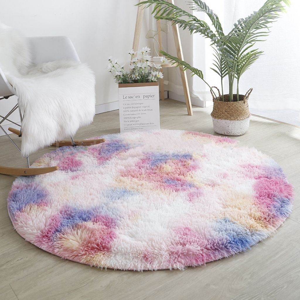 Karpet Bulat Ombre & Ombre Warna Diamater 100cm/Karpet Bulu Lantai Bulat