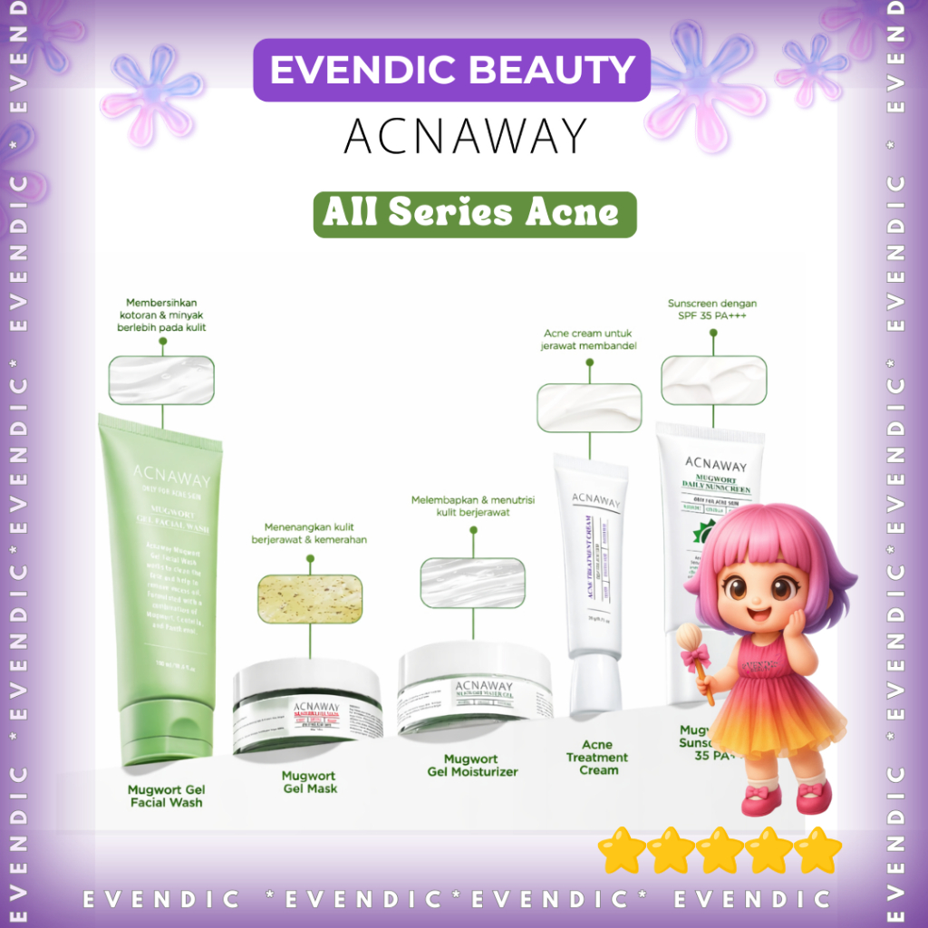 ACNAWAY Mugwort |All Series| Facial Wash | Gel Mask | Water Gel Moist | Untuk Kulit Berjerawat Acne Friendly | Evendic Beauty