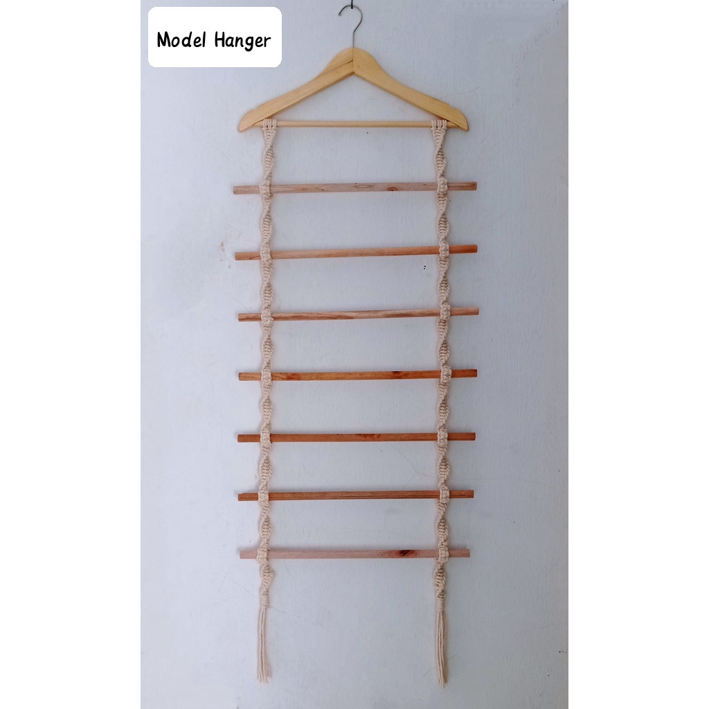 Hanger Kayu Gantungan Jilbab Susun Hijab Mukena Macrame aestetik