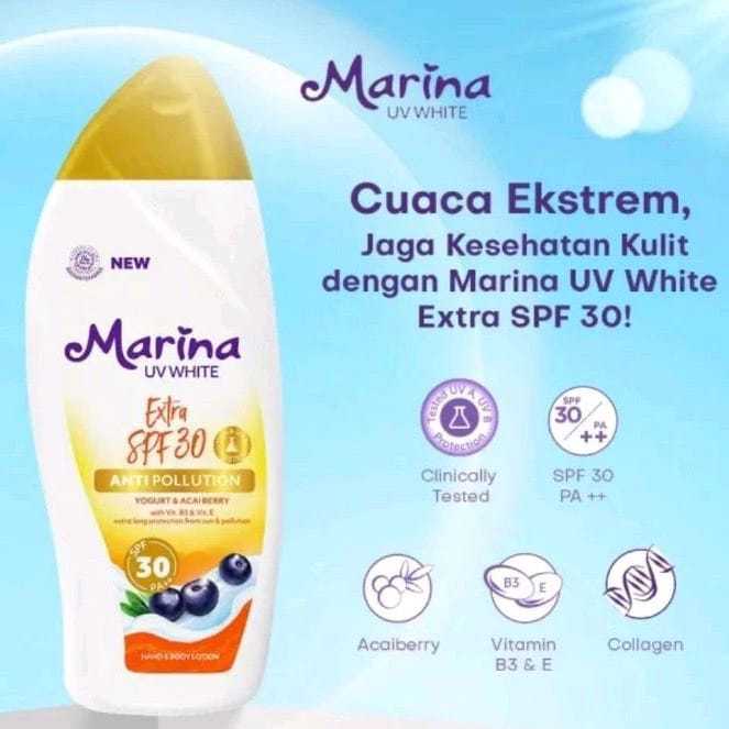 Marina UV whitening lotion EXTRA SPF 30 Anti pollution 92ML 185ml tutup gold hand and body lotion pelembab moist moisturizer