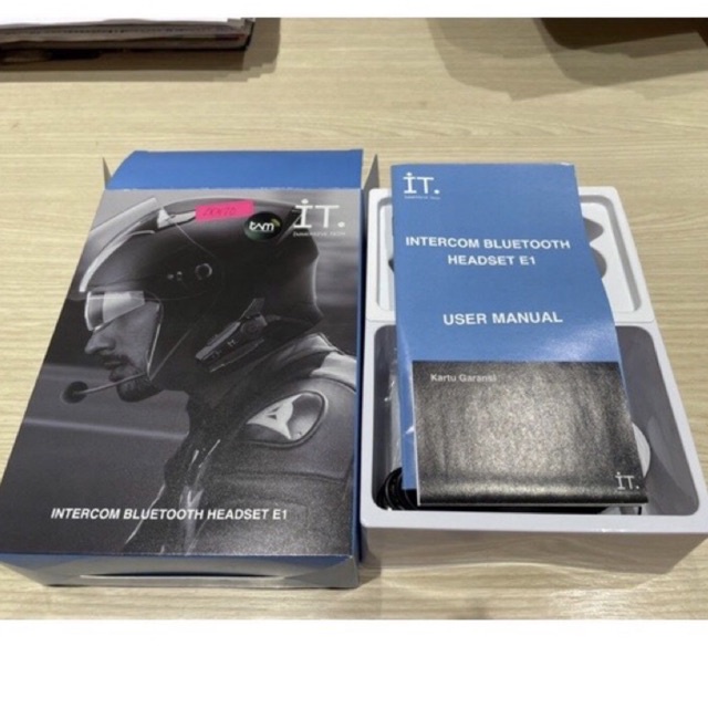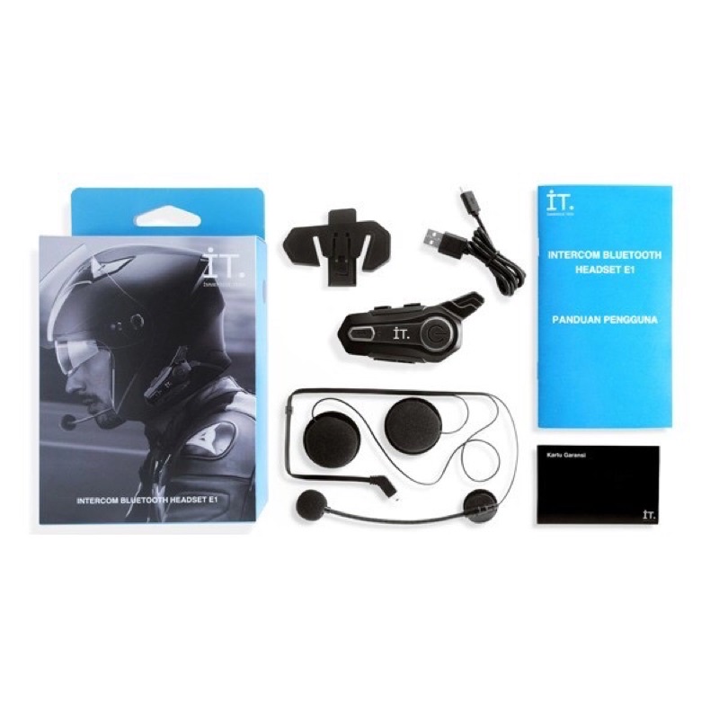 (Gratis Tote Bag) IT Intercom Bluetooth Headset E1 - Black Gransi Resmi